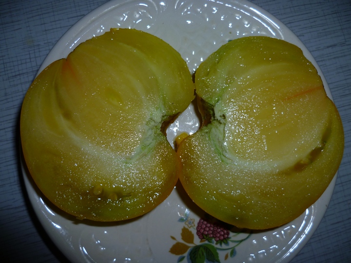 Нефиолетовая клубника от Кэти2. Слааадкий томатик,вкусный.Красивые,ровные. Отложила на семена. Давала рассадой сестре,она в ОГ его сажала. Тоже удалось попробовать,успел у нее до фитофторы созреть.