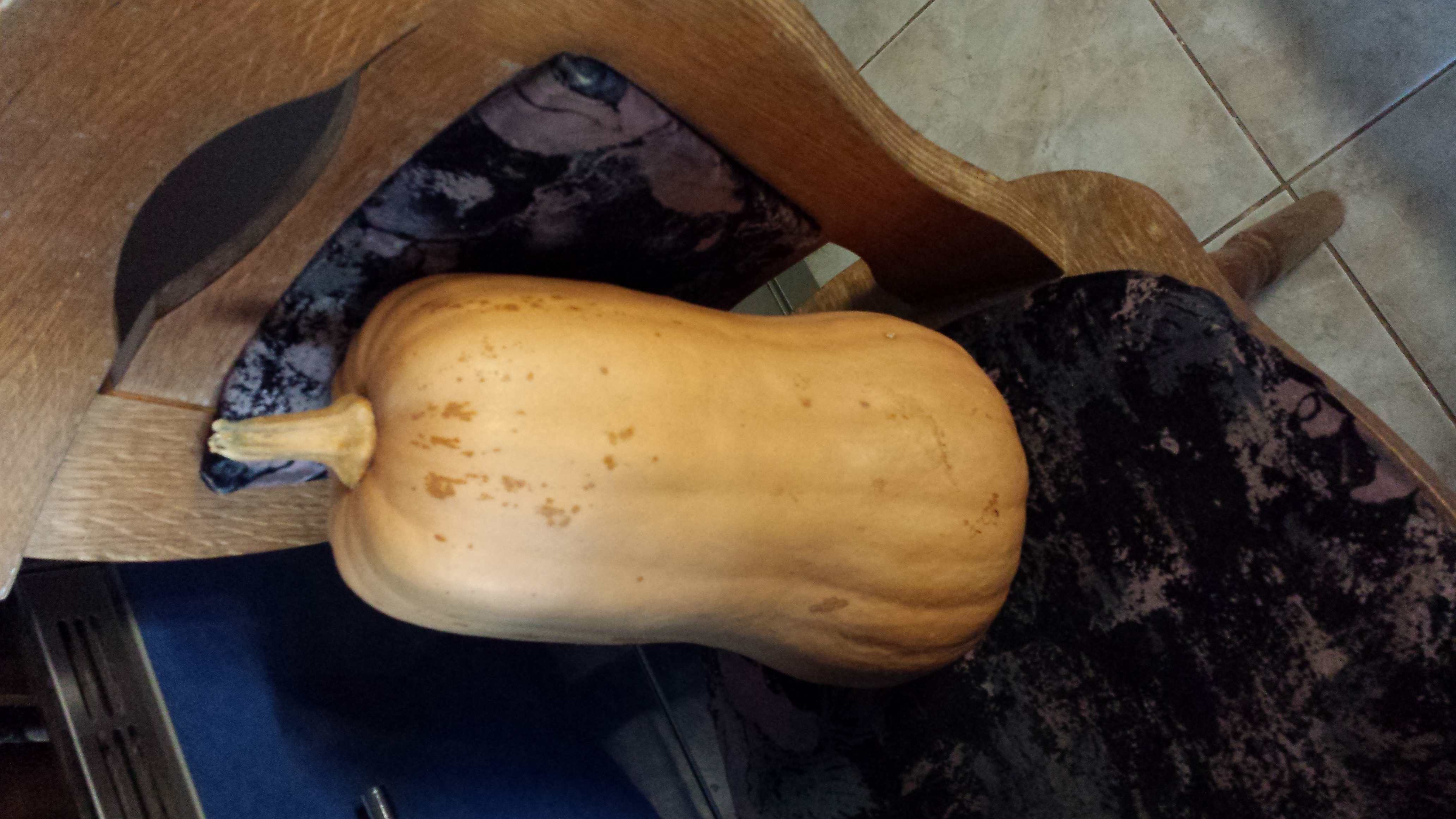 Сеяла на рассаду в Первомай, высаживала в холодный конец мая, числа 25-го, поставила около корня палки и накрыла старой пленкой. Когда хорошо наросли, открыла. В конце августа, тоже числа 25-го, дожди особенно усилились, одна тыква Орешек оказалась в междурядье в воде. Стала её поправлять, а она уже легко отделяется от стебля, ну я и сняла все тыквы, чтобы их не мучить. Лежат пока в летнем домике, парочку разных дегустирую.