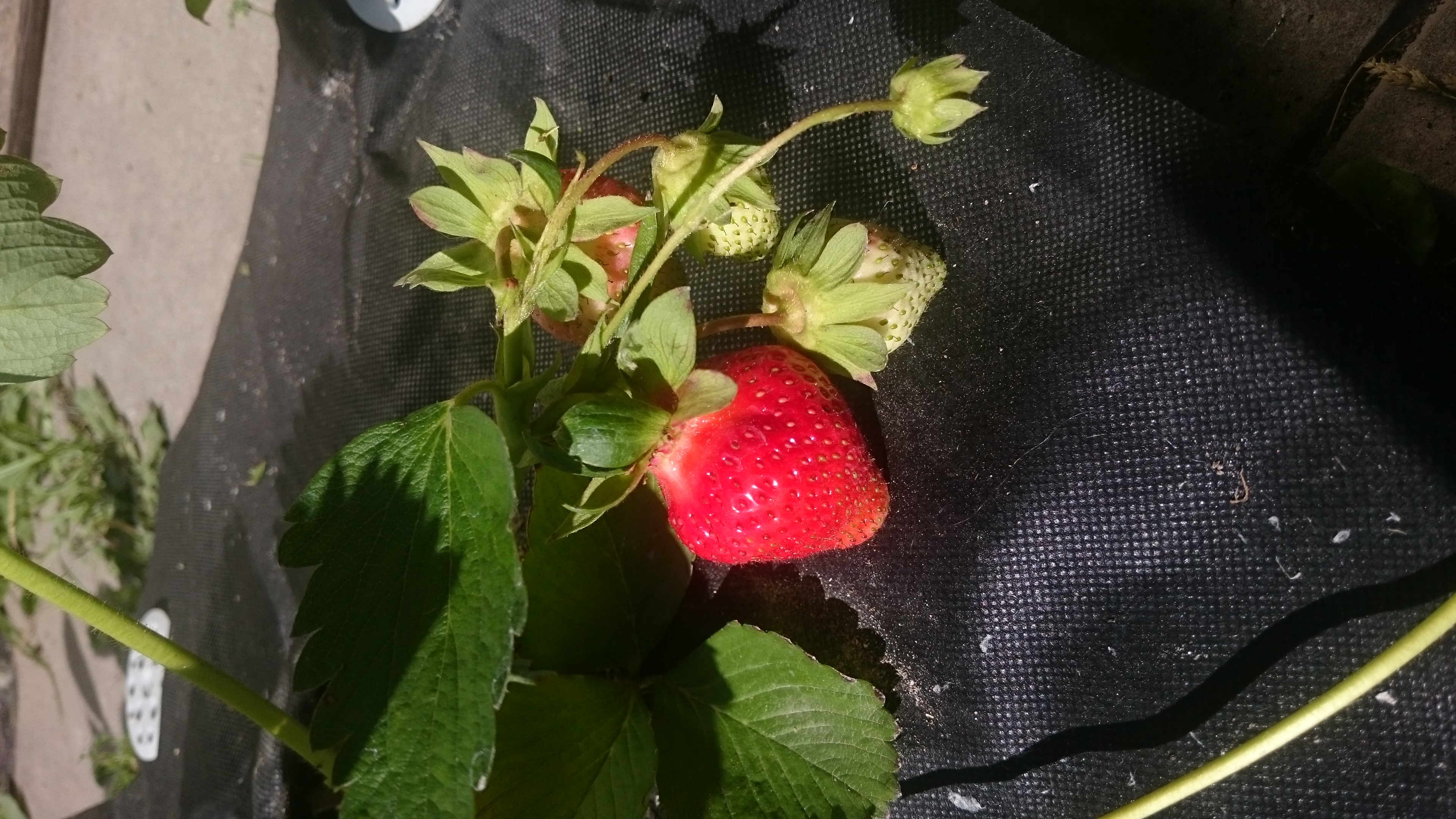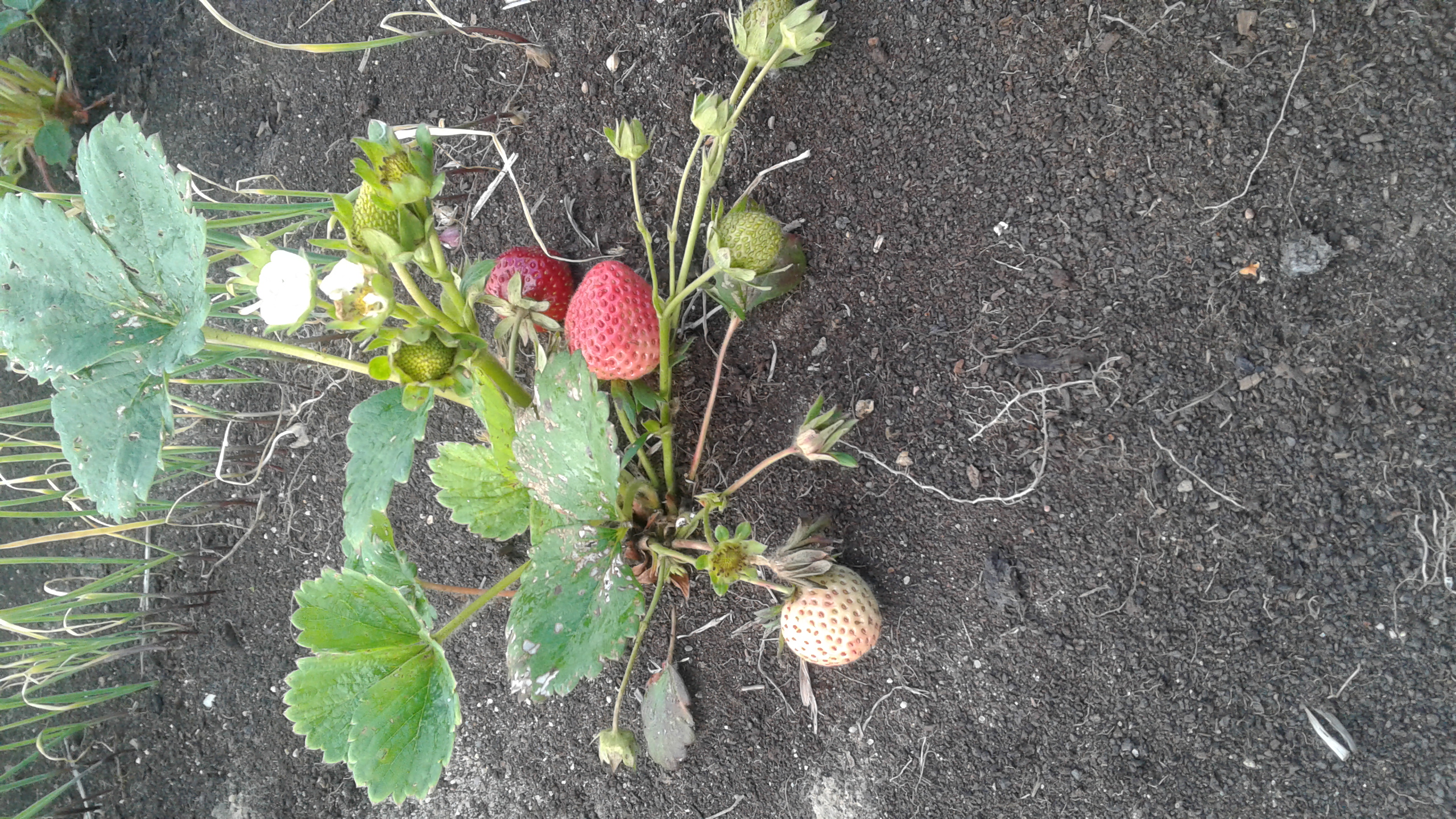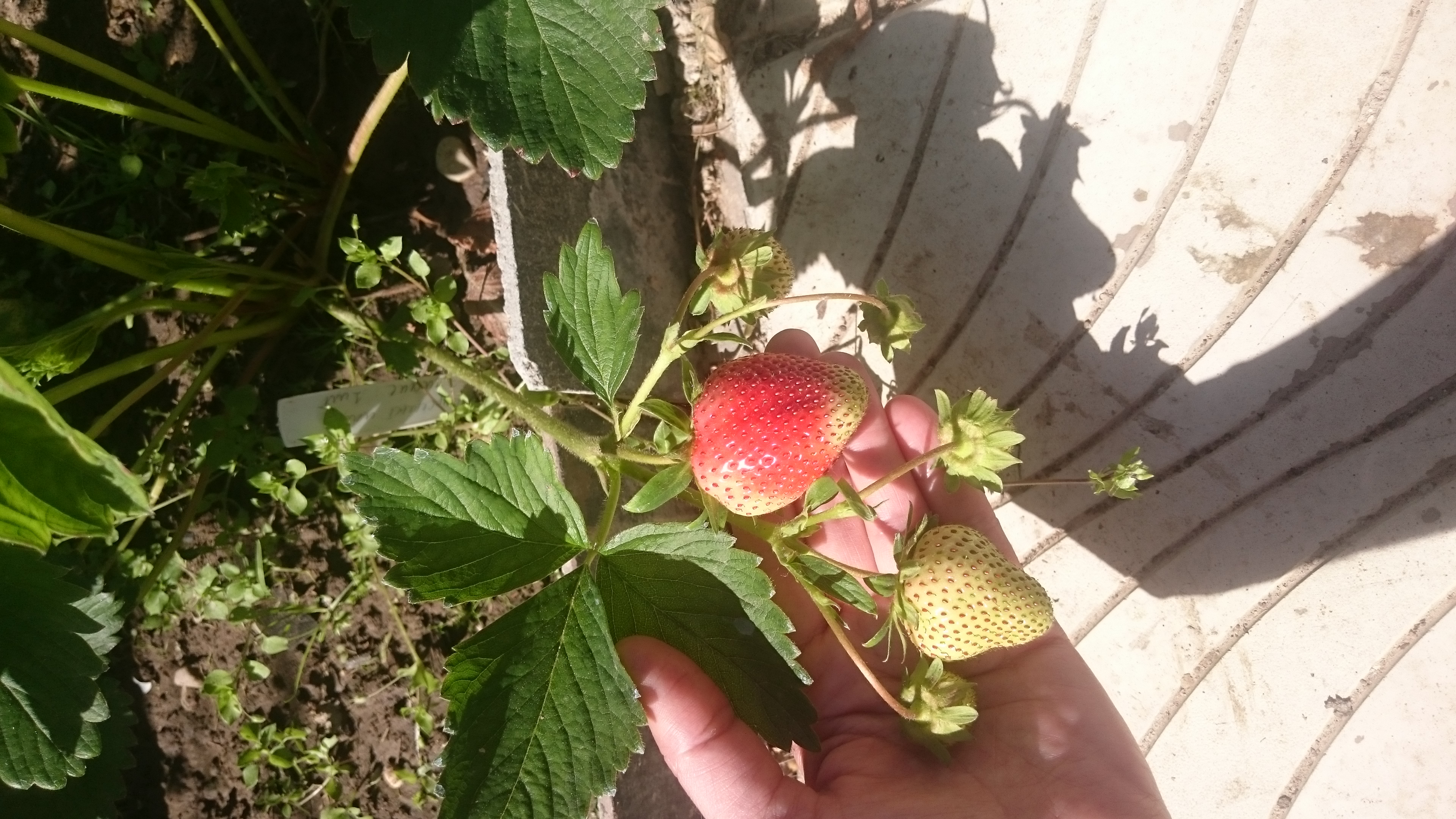 Созрела первая ягодка. Кусты сажала в начале сентября 2017 г. Первой созрела Флорина. Усы с маминого огорода, она покупала в садовом магазине как ремонтантную. Единственный сорт (возможно на других просмотрела), который частично не выдержал заморозки и часть цветков почернели. Но и листовая масса у него самая куцая.