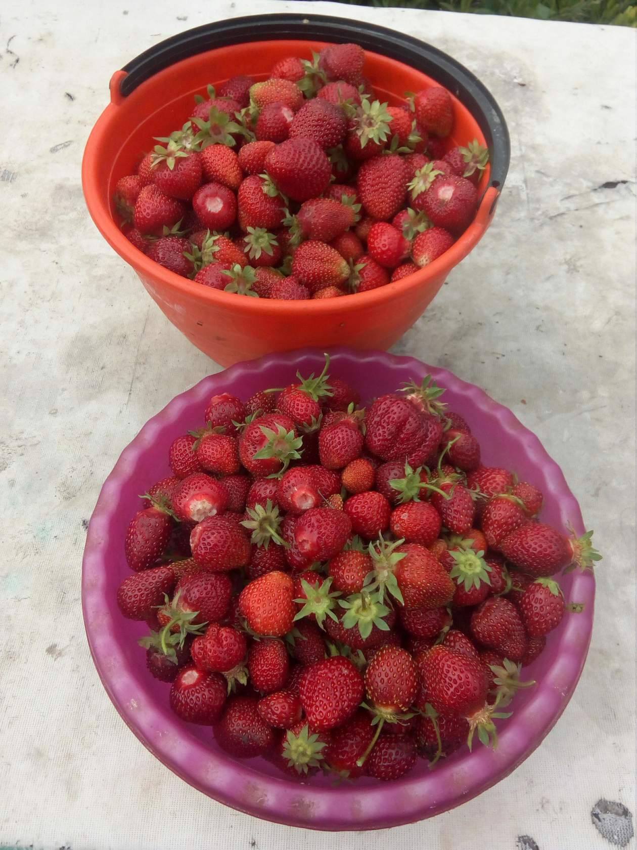 Специально посчитал 92 корня,30 корней однолеток(собственно с них основной урожай,почти 5 л. ведёрко),остальная 2-3-4 летки,с 3-4 леток кот наплакал,основное с 2 леток Азии и Сирии(это 3 л. чашка).По этому году делаю вывод,что больше 2 лет смысла нет держать землянику.
