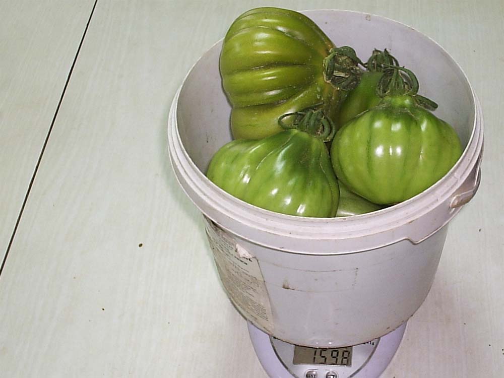 на 8сентября снял 3,35кг в 22плодах и штук 20-30 некрупных плодов еще осталось на кусте