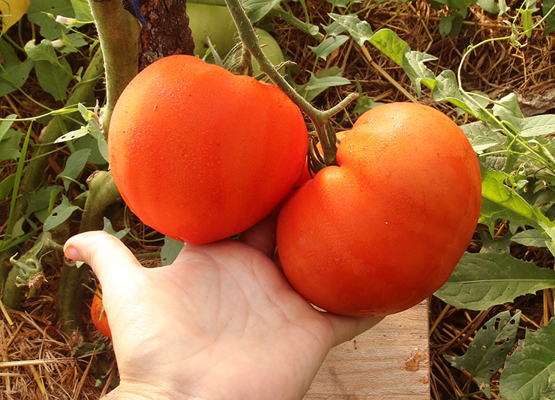 Ещё хотела попросить помощь зала. Надо определить сорт, бирка потерялась. Помидорки похожи формой на сердце, красно-оранжевые, крупные, достаточно вкусные. Может кто из этих?
