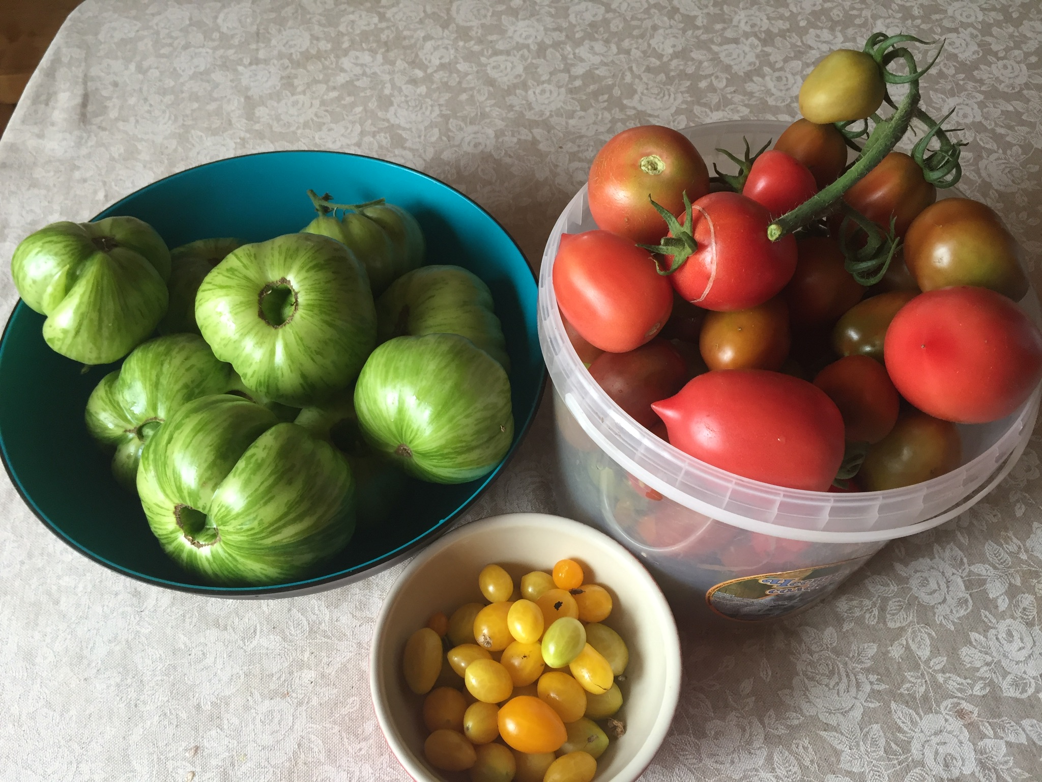 Закончился у меня помидорный сезон. Нашла сегодня два черрика поражённых фитофторой. И сразу сняла все остатки зелёные.
