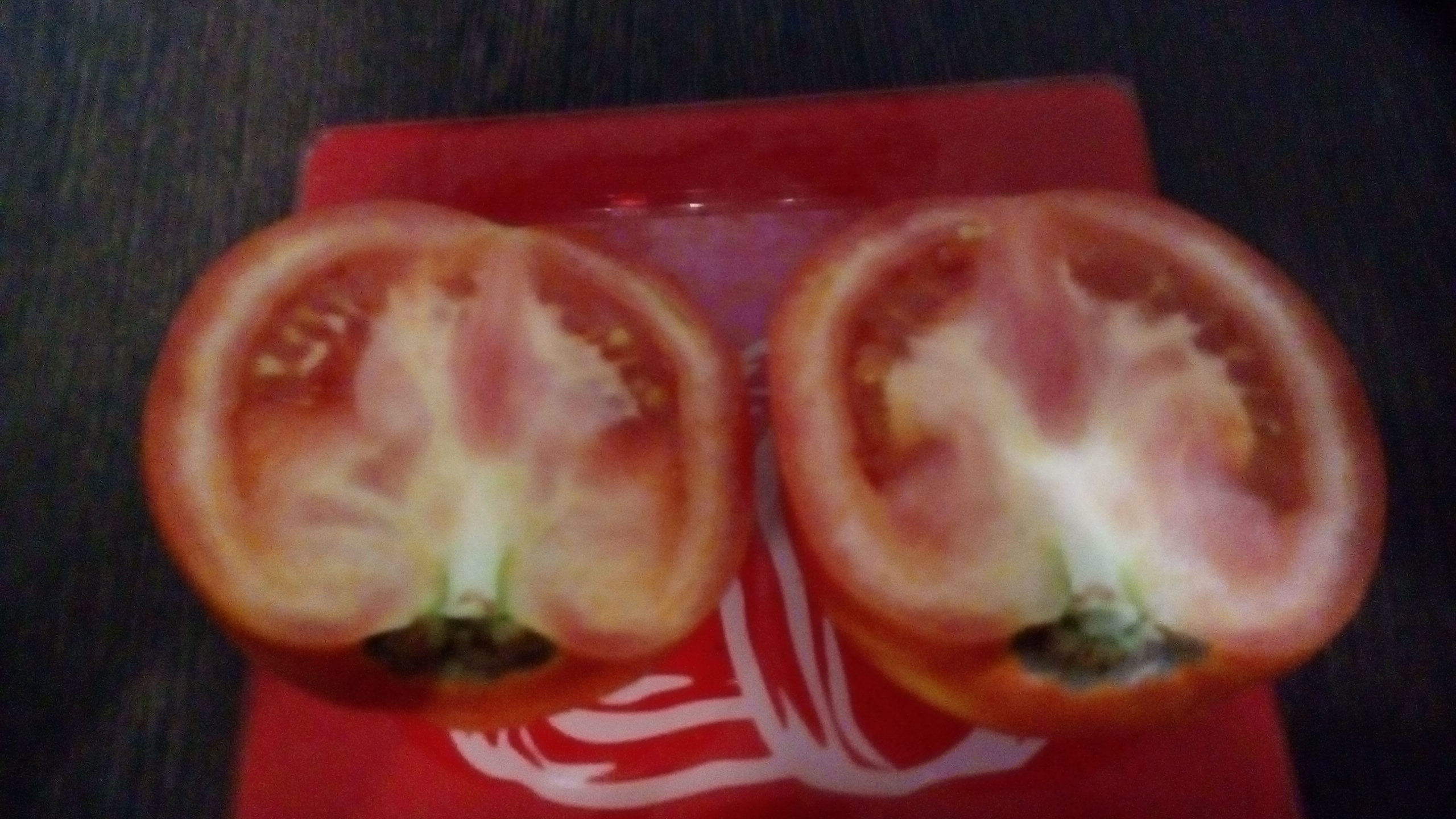 В разрезе сделаю по позже, спелый помидор съели уже, сфотографировать не успела.