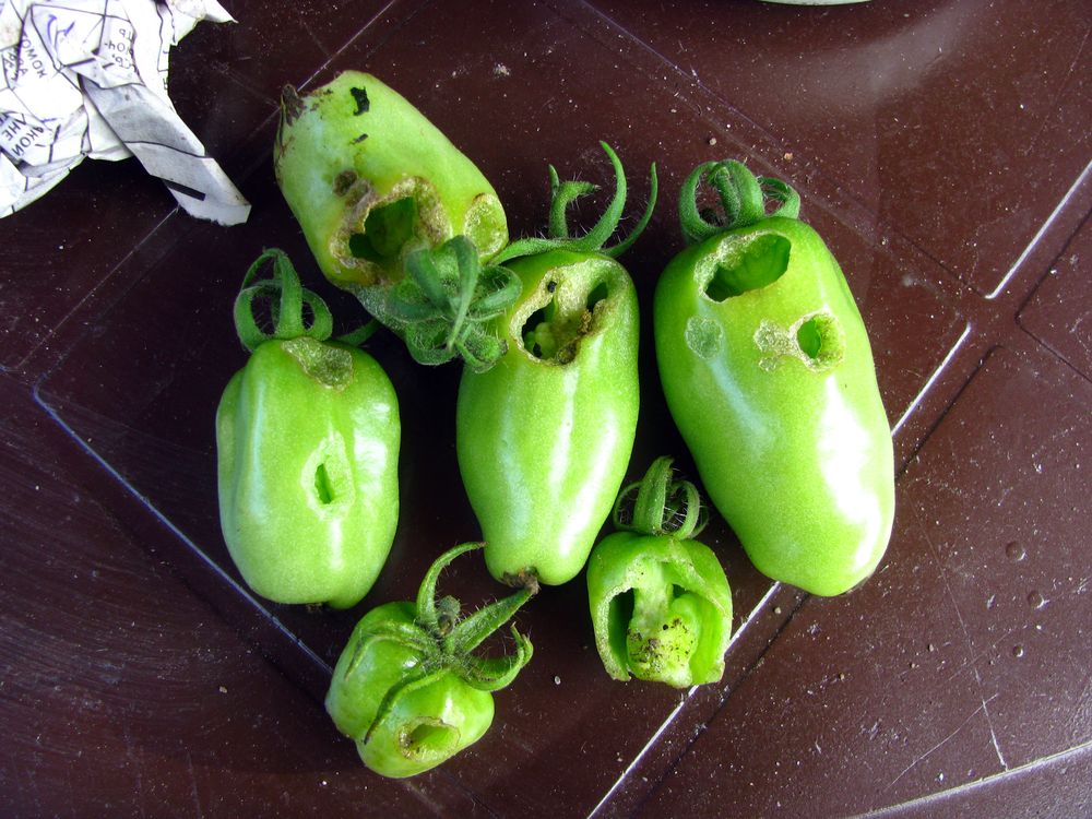 У меня жрут совки, вроде. Каждый год. Задолбали. Надо бы травить, но не хочется, начинают жрать когда уже помидоры зреют. Надо как то бабочек ловить.