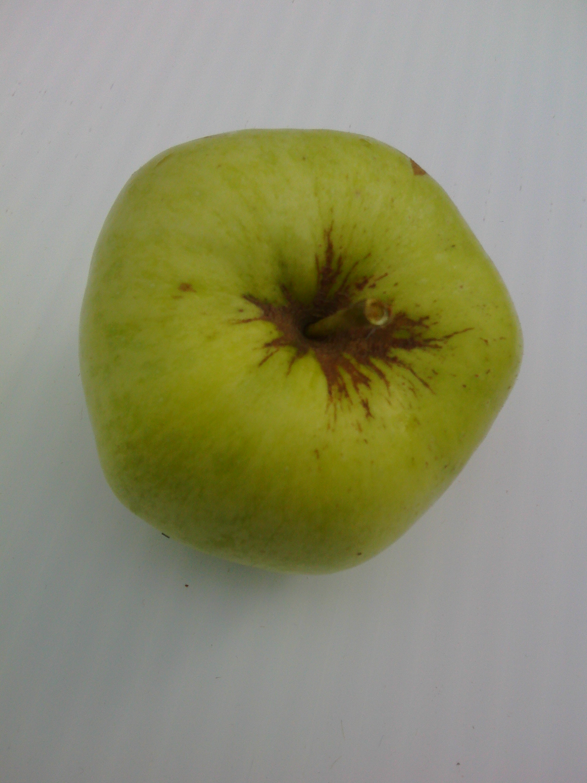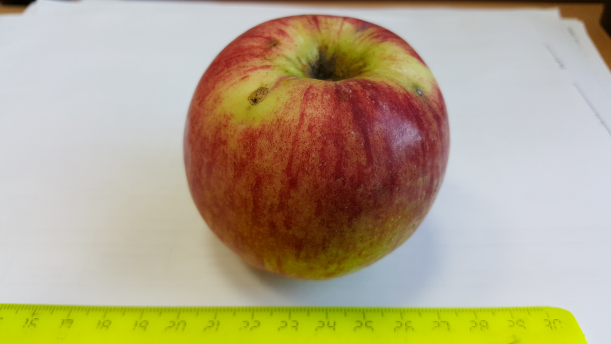 Впервые узнал о сорте из сообщения Виктора Павловича Браткина http://forum.prihoz.ru/viewtopic.php?p=582759#p582759 , от него же получил черенок. Прошлогодняя прививка зацвела в этом году, завязалось два плода. Сорт по описанию летний, но в текущем году сроки созревания сортов полностью непредсказуемы, со съёмом пытался угадывать. Первое яблоко, внешне вполне зрелое, сорвал 10 сентября, но оно оказалось ещё не готово (семена светло-коричневые, вкус с "привкусом недозрелого яблока"); мякоть плотная, даже грубоватая, яблоко тяжеловесное (200 г). Второе яблоко сорвал 24 сентября (держалось на дереве прочно), семена коричневые, мякоть с наливом, уже не такая плотная, ощущение грубоватости ушло. Похоже, что яблоко даже несколько перевисело. Вкус насыщенный, кисло-сладкий, без резкой кислоты, достаточно интересный, но по мне до гармоничности немного не хватает сладости. Если на этот фон добавить ещё сахарку – будет просто отличное яблоко с сильным ярким вкусом. Надеюсь, что в нормальное лето именно так и произойдёт.