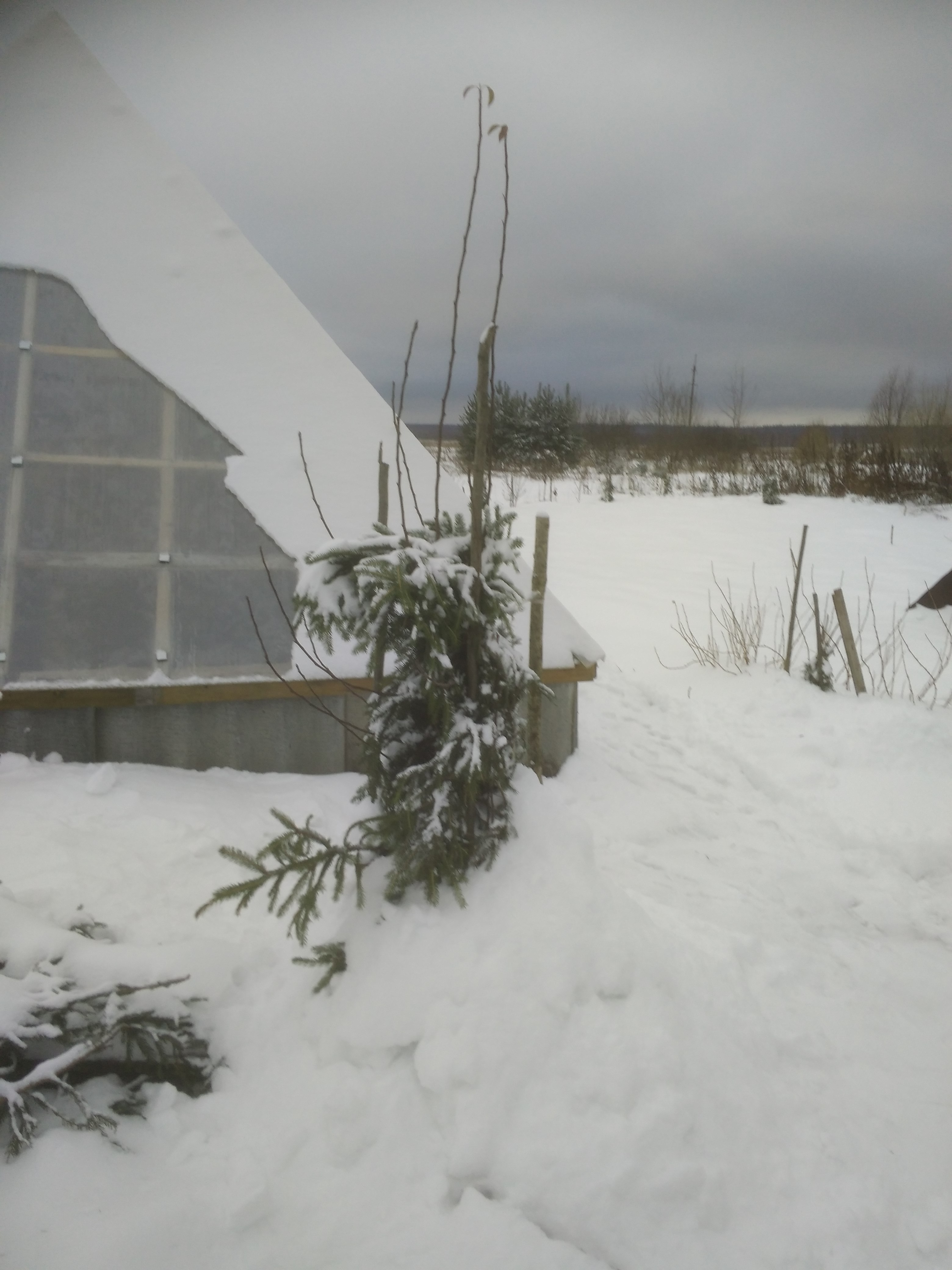 Прививки на дичке.Штамбы не белю.Вчера от солнца и мышей обвязал еловым лапником и снежку подваливаю.Делаю всё что бы сад перезимовал хорошо.