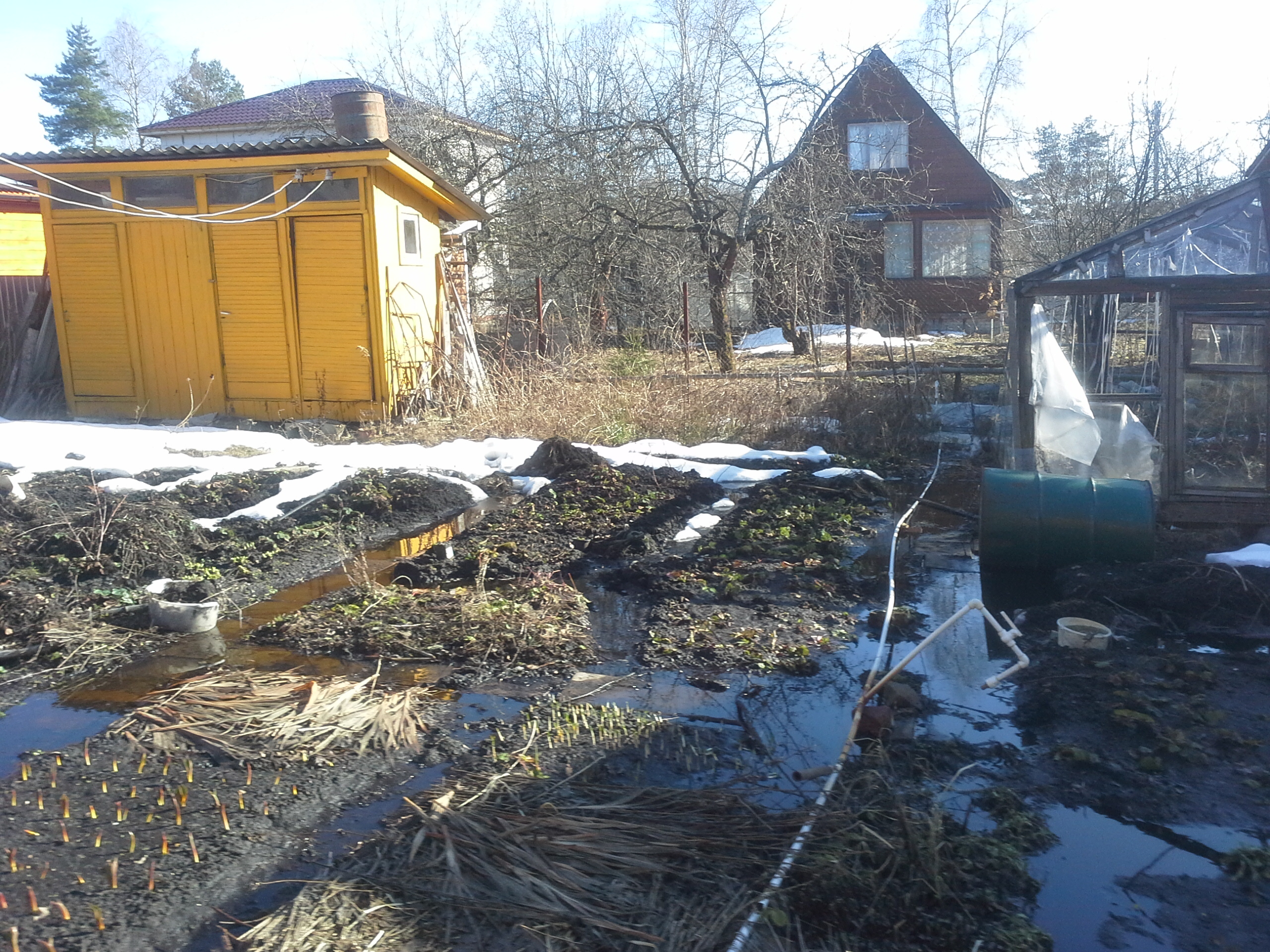 У меня в этом году впервые участок с легким подтоплением, картина немножко необычная для меня, не привык, ходил в сапогах)). Пока работать на огороде нет смысла, только снимал укрытия и все). Сегодня поеду туда и посмотрю что там.