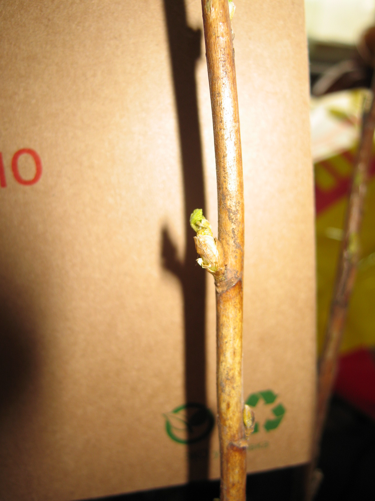 На полученной смородине "Ben Sarek 1 ветка" в которой была влага, на 3 день в горшке, набухли и будут распускаться почки