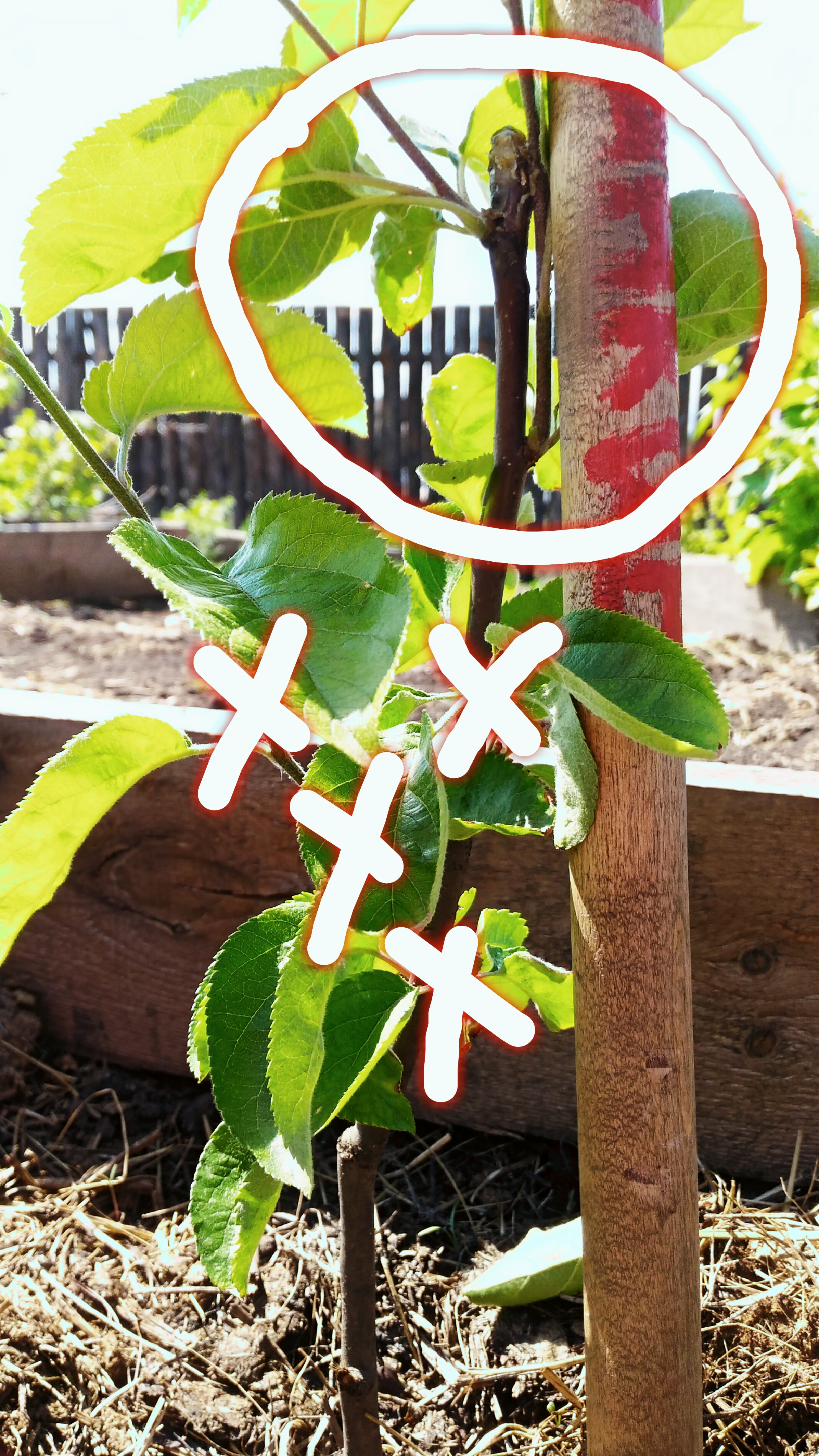 Так как я никогда не имела дело с саженцами и формировкой,то представила в уме как все надо сделать в двух вариантах ( прказала на фото,кружком обозначила,что оставить,крестиком,что отрезать).Верно или я поняла не так :unknown: ?