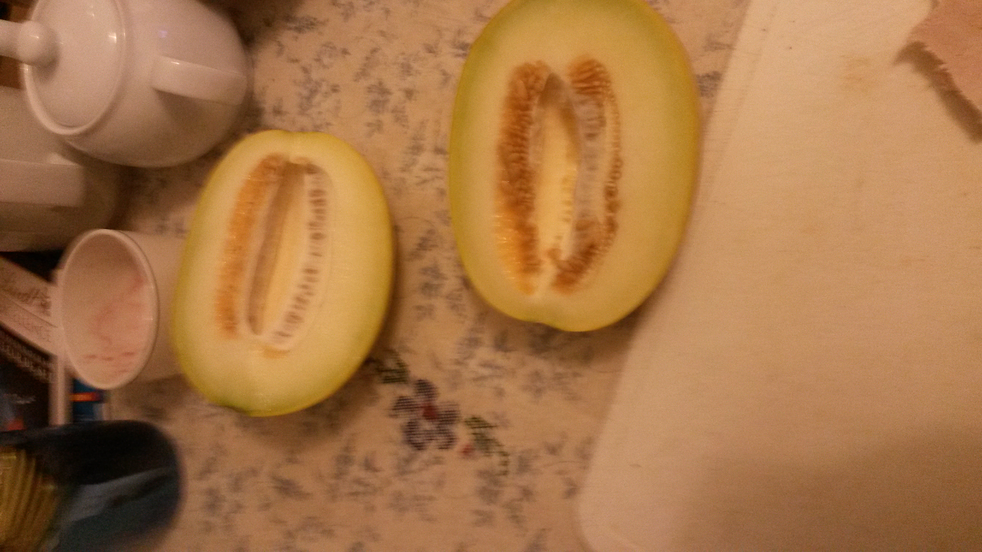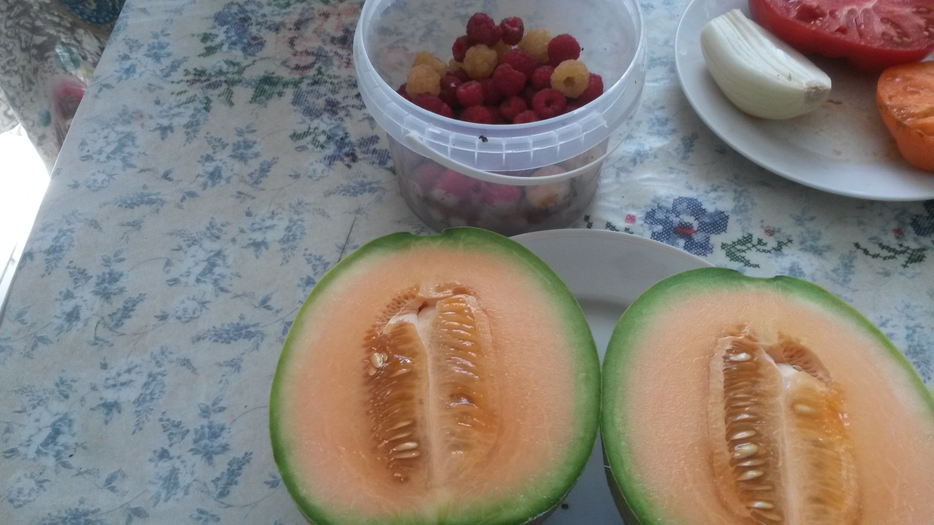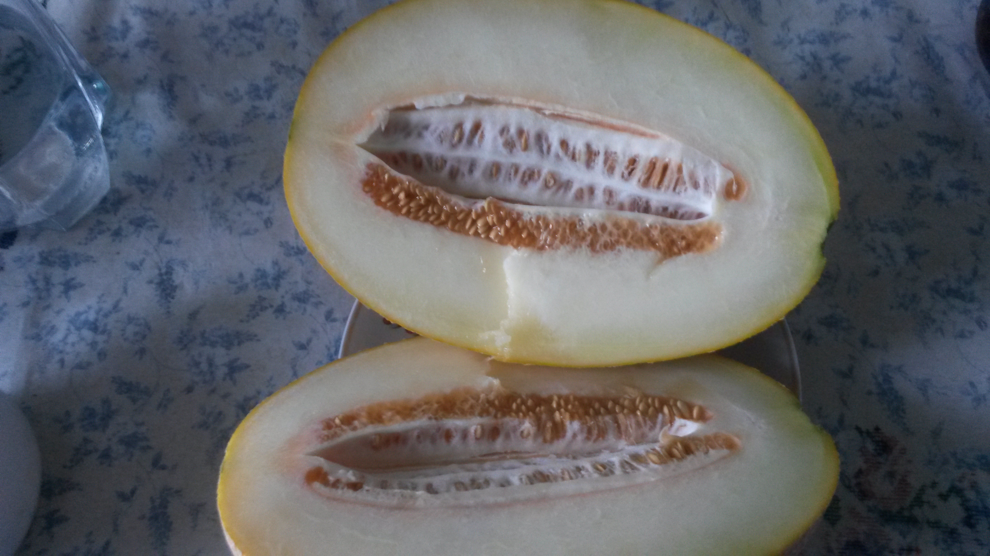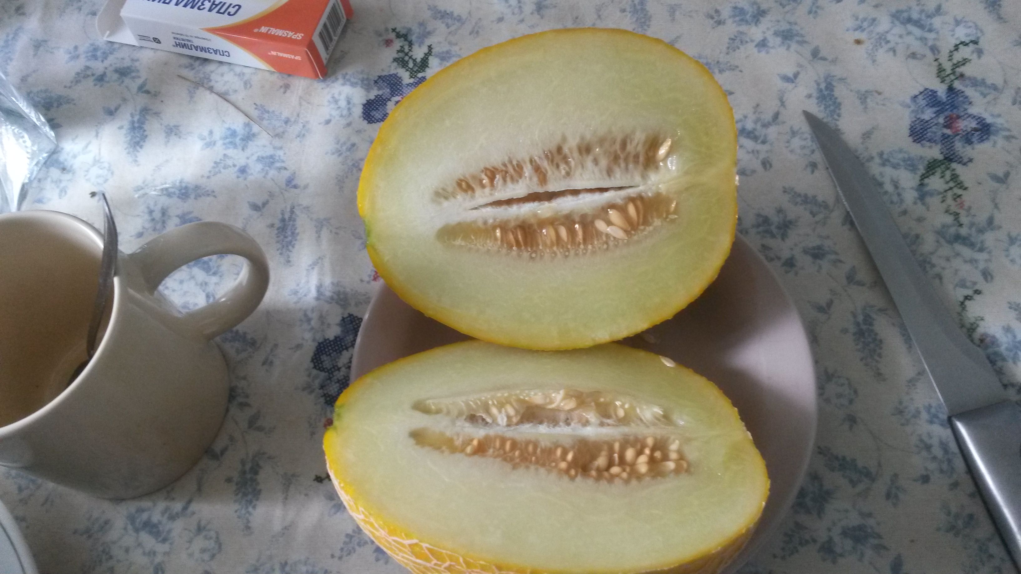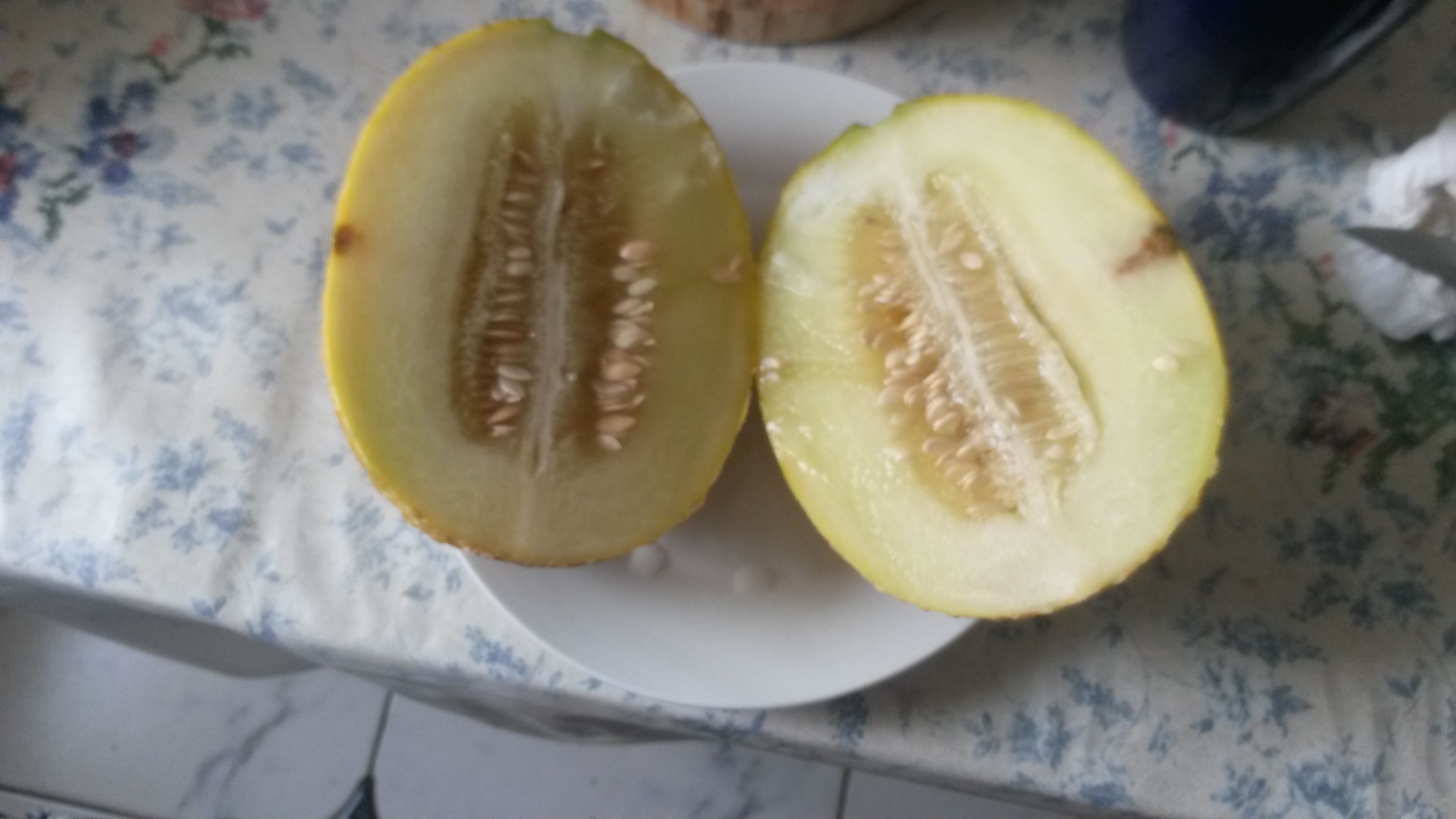 - Реймель - пока единственные из уродившихся Пиель де сапо. Супер вкусные - ели их в октябре-ноябре. Одна беда, сказали, что больше семян не будет. Попробовал в этом году Рикуру, но она уже заболела. Хотя завязала 4 плода примерно по 1-1,5 кг. Надо будет попробовать ее в прививке.