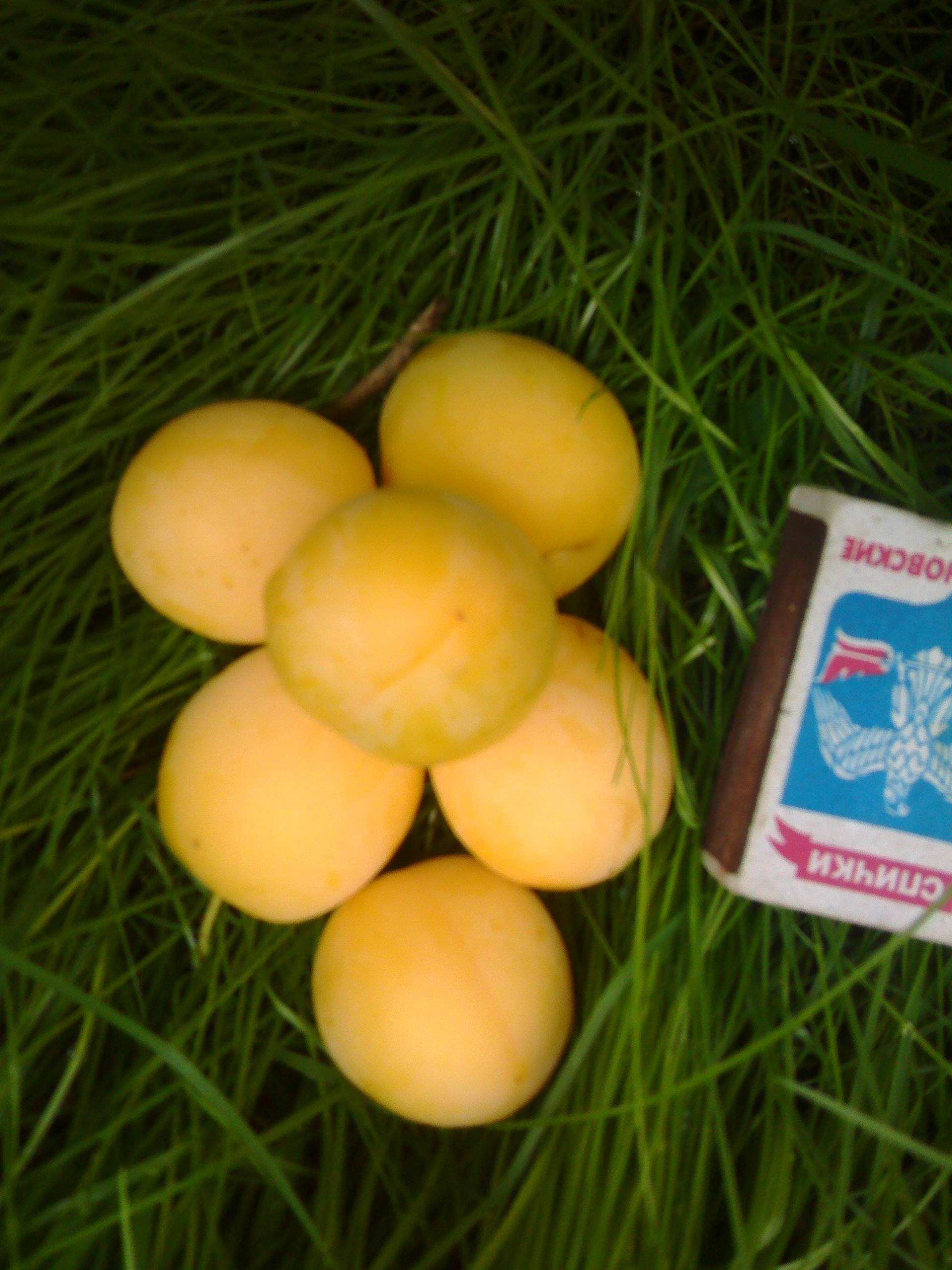 Мякоть волокнистая(как у абрикоса). Вкус абрикоса. Вид сливы. Размер не очень. Первый раз мне показалась суховатой(не понравилась). В прошлом году вкус уже был другой.