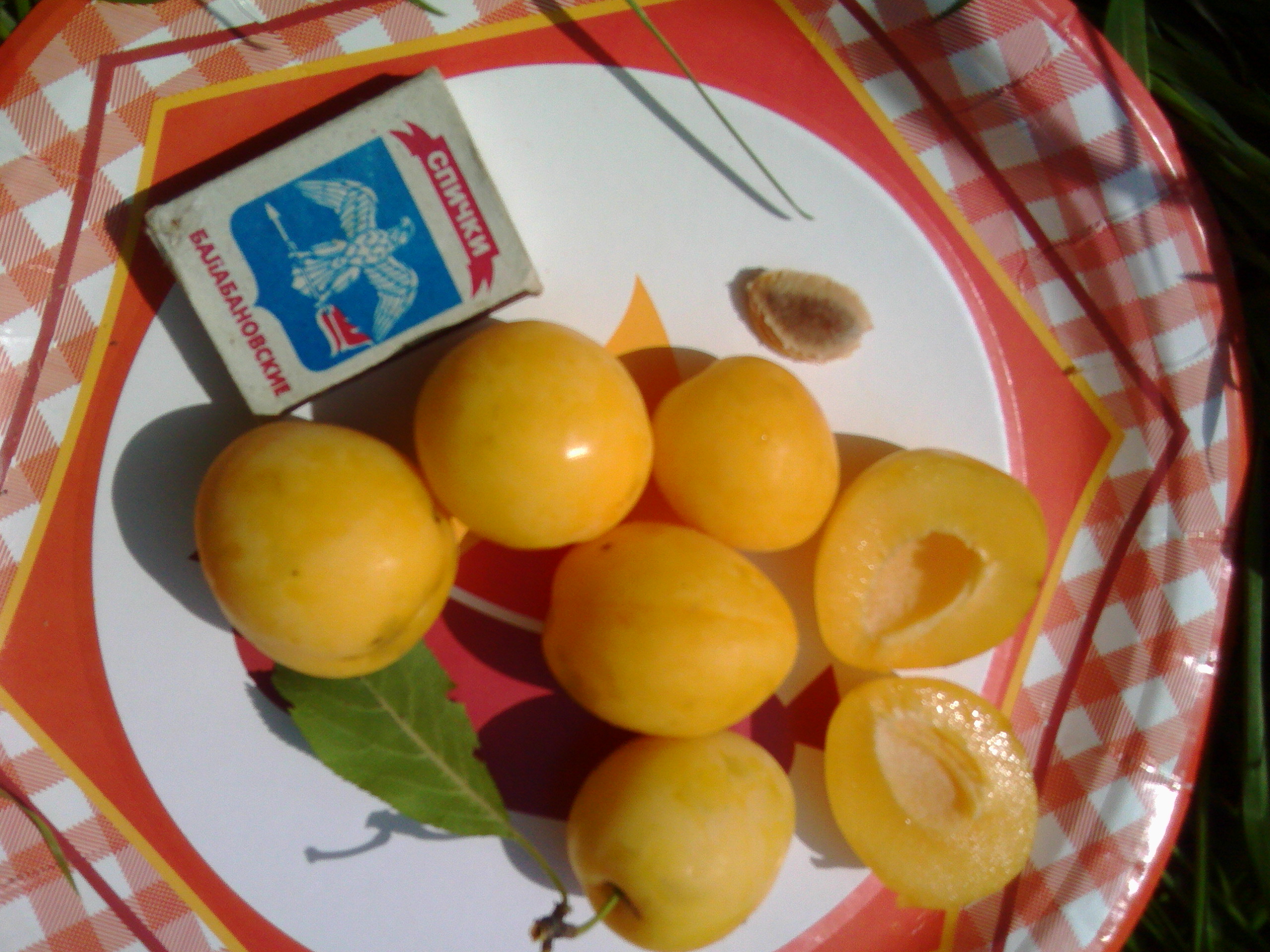 Дегустационная оценка абрикосовой сливы говорит о его выдающихся вкусовых качествах и ярко-выраженном аромате. Мякоть плода плотная, менее сочная, чем у абрикоса, а шкурка гладкая, как у сливы.