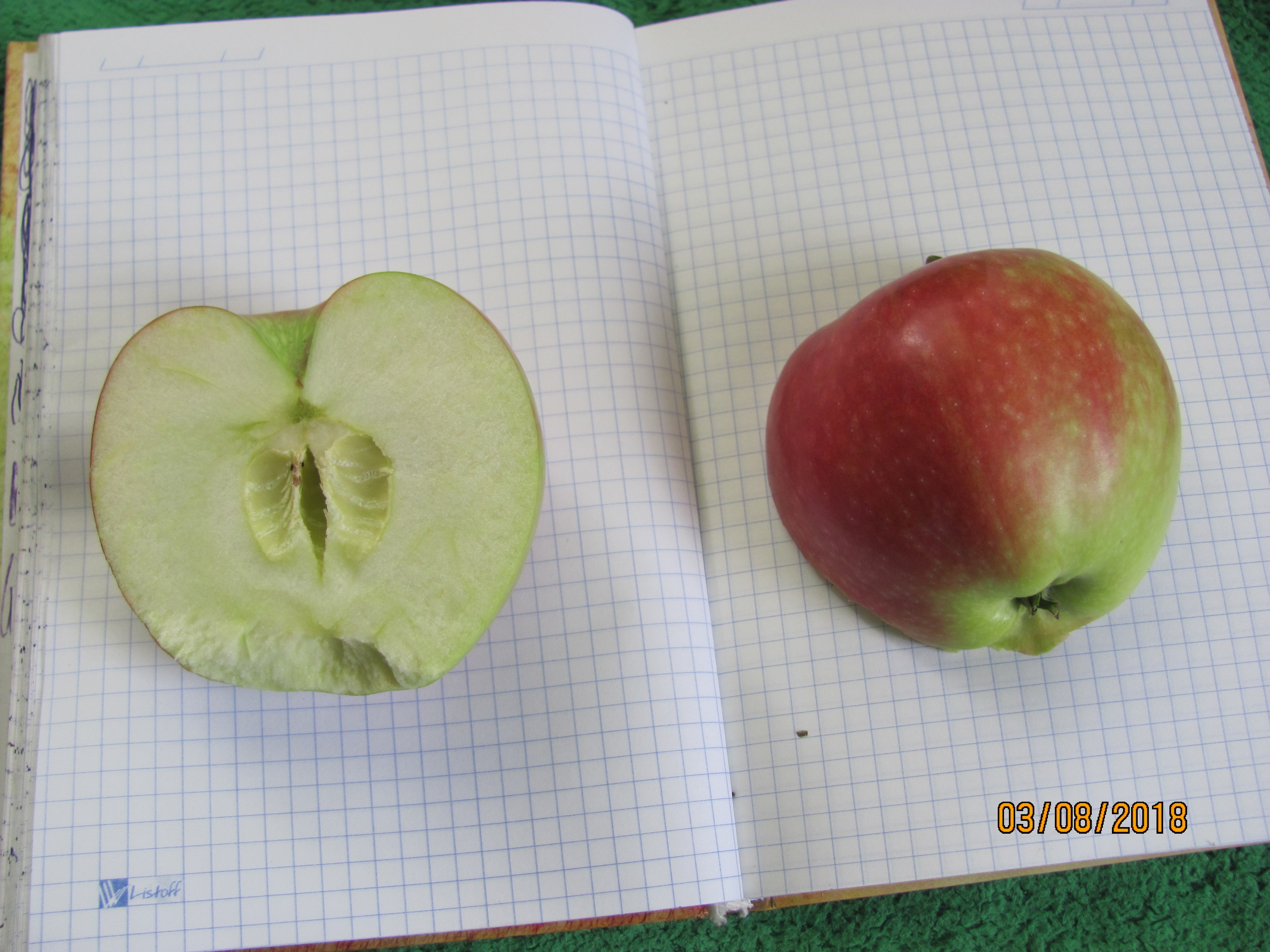 Невзрачное на вид яблочко. Не крупное. Когда окрасится, становится ярким, красивым внешне. Вкусное и лёжкое. Зиму 16-17 года перенесло нормально.