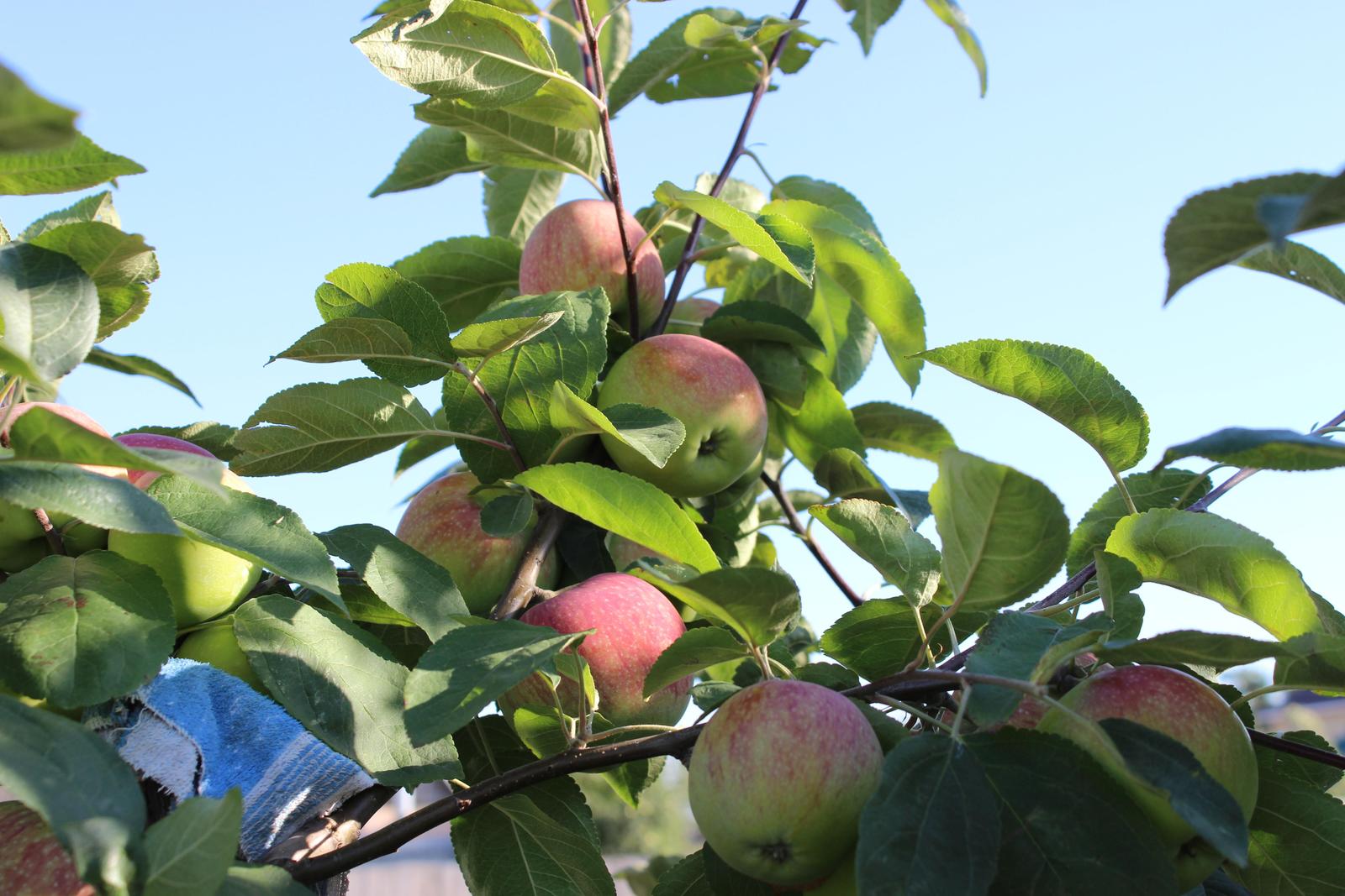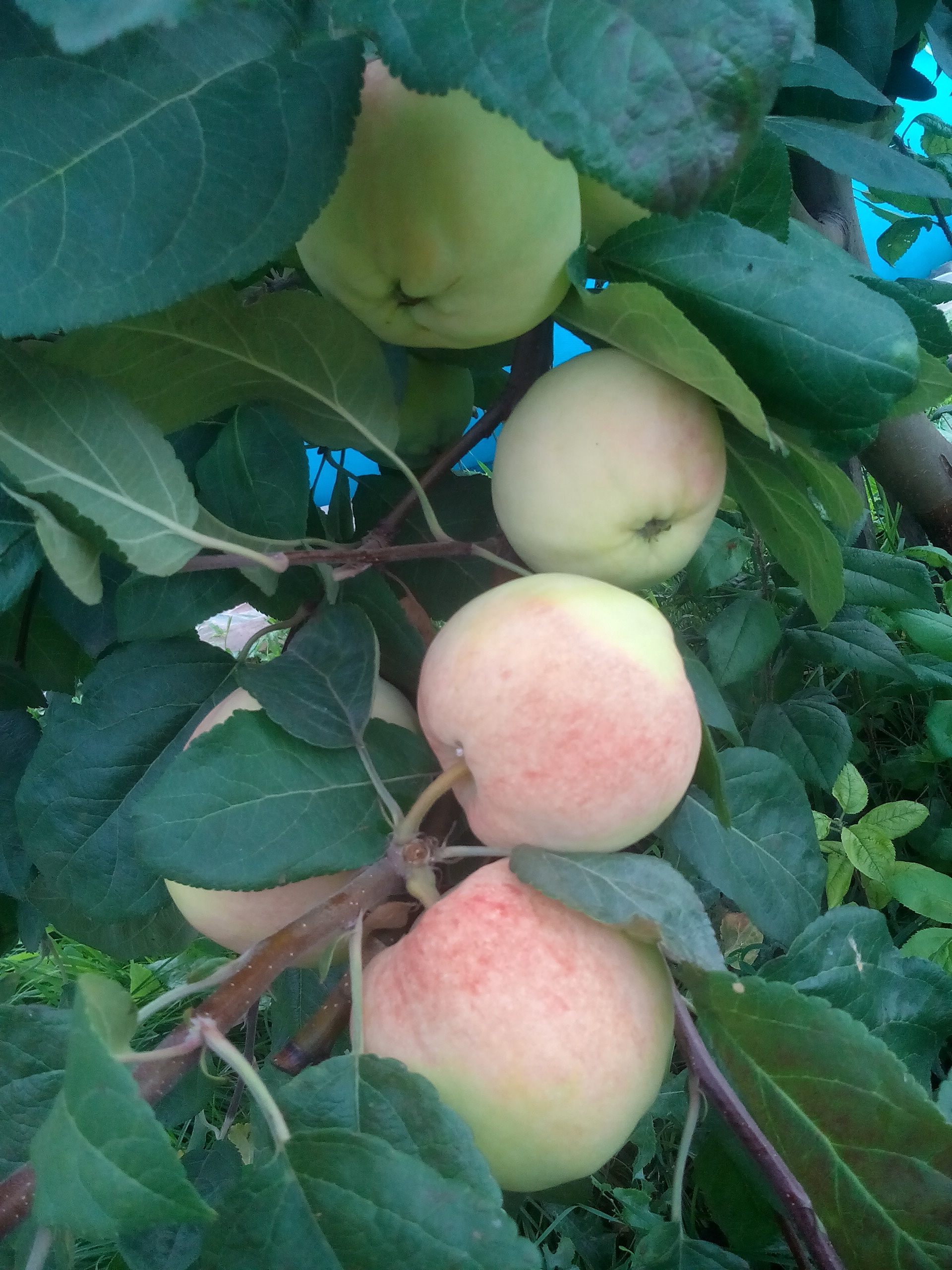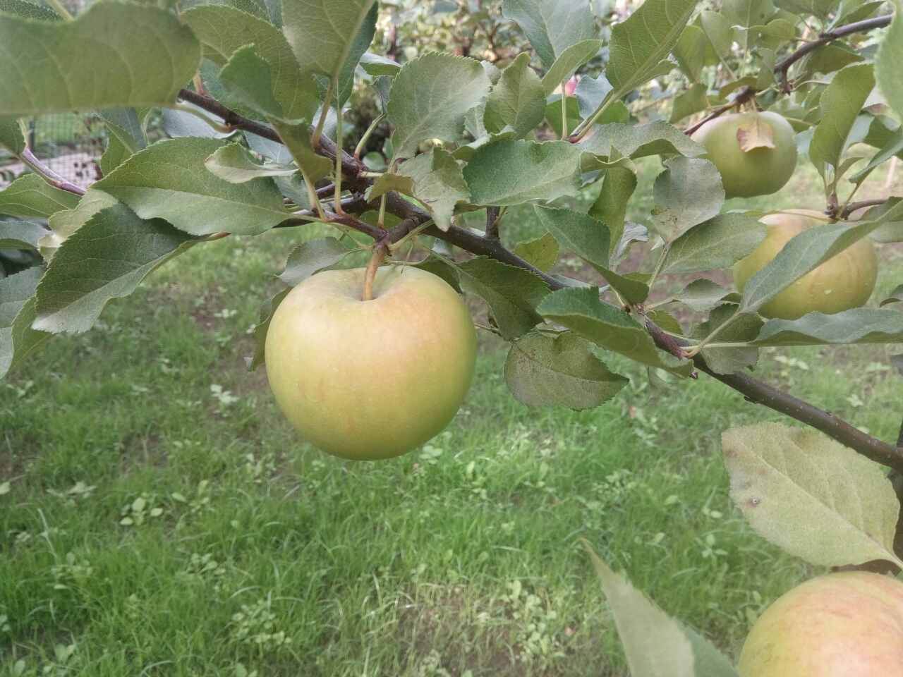 Наконец то и у нас начали созревать яблоки... Аркад жёлтый.