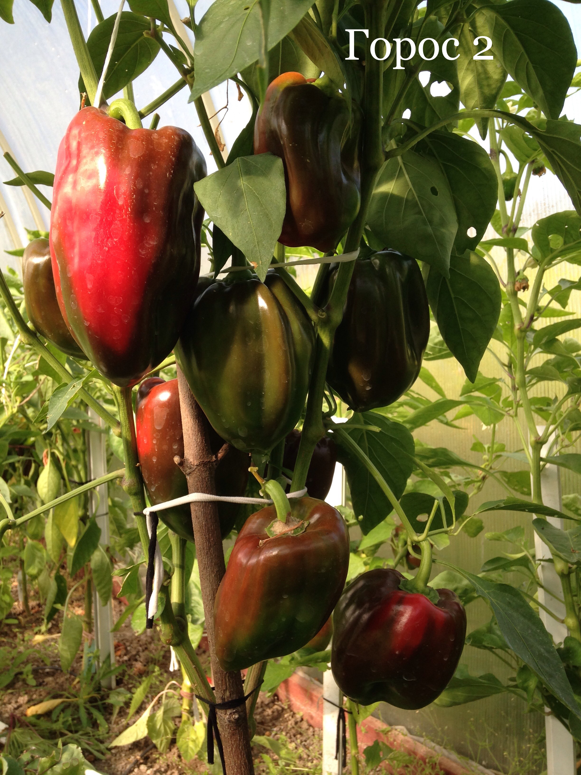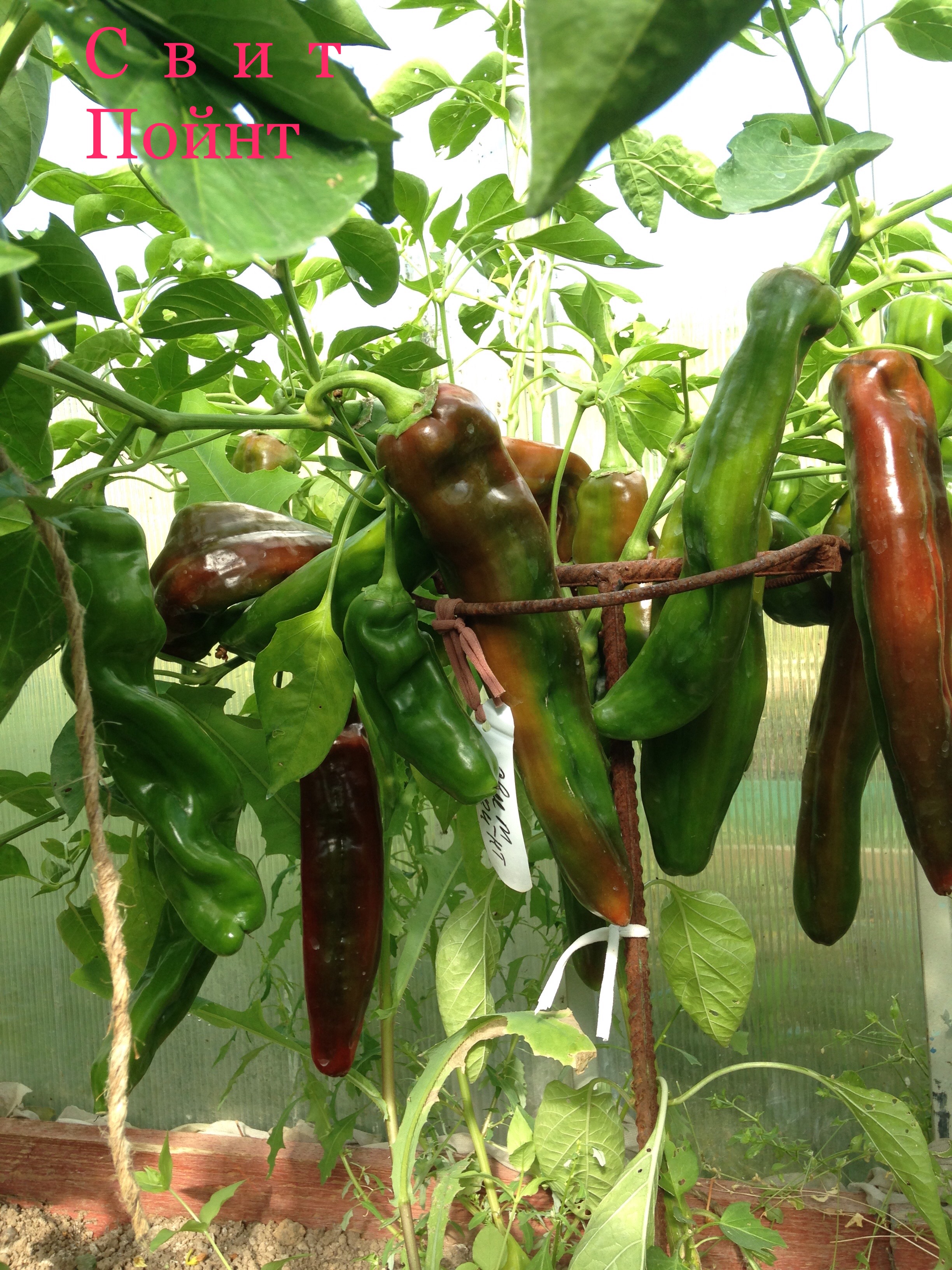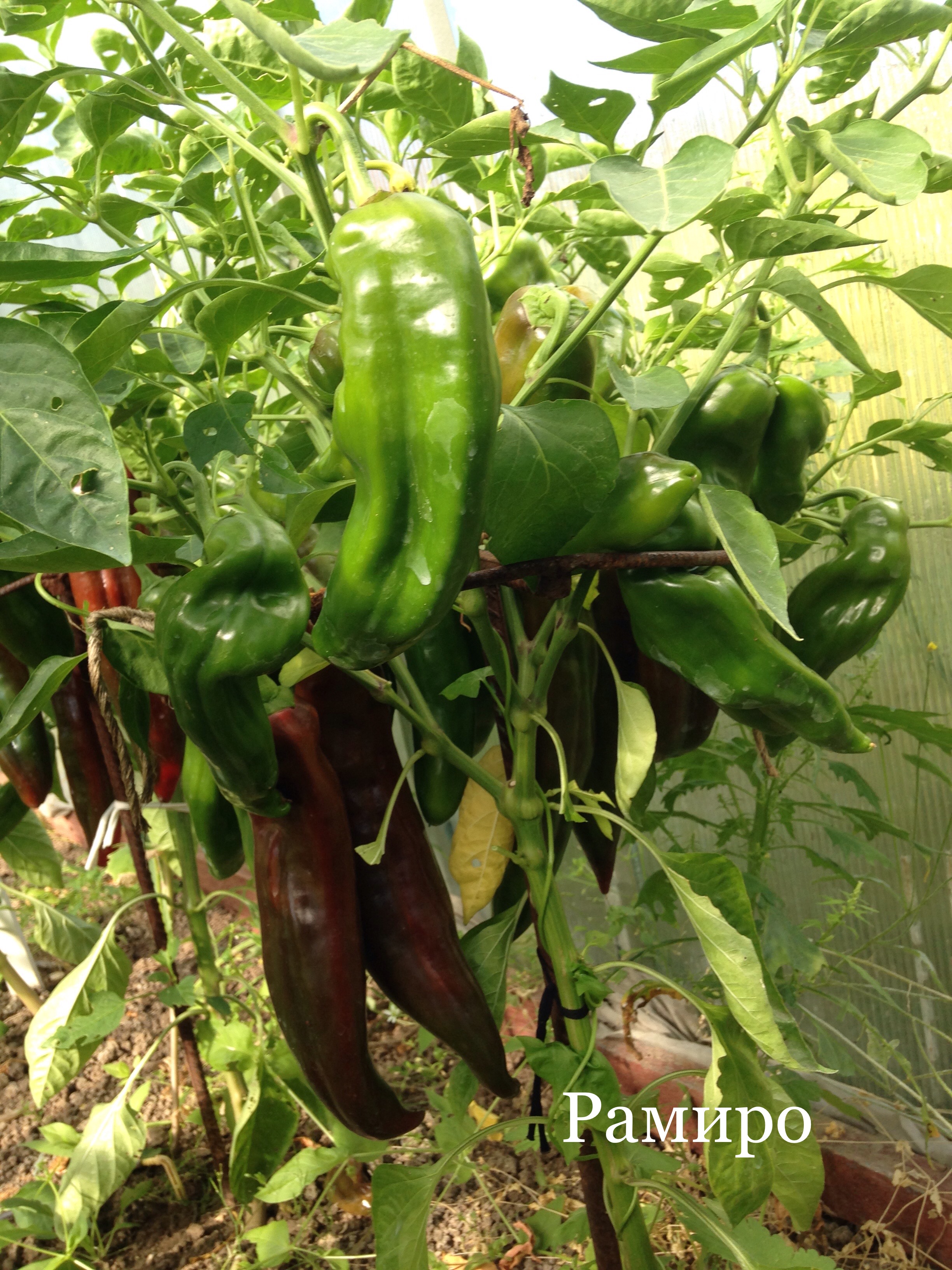 Горос у меня "родился" со сборочкой у плодоножки, переопылился видно, назвала Горос 2, чтоб не путаться. Но урожайность радует. Кусты мощные. Свит Поинт, навсегда прописался у меня несмотря на форму, Рамиро - семена магазинные, очень сладкий, семена не собираю, покупаю каждый год перчик Рамиро в супермаркете, выбираю поспелей, отлично всходит и повторяется.