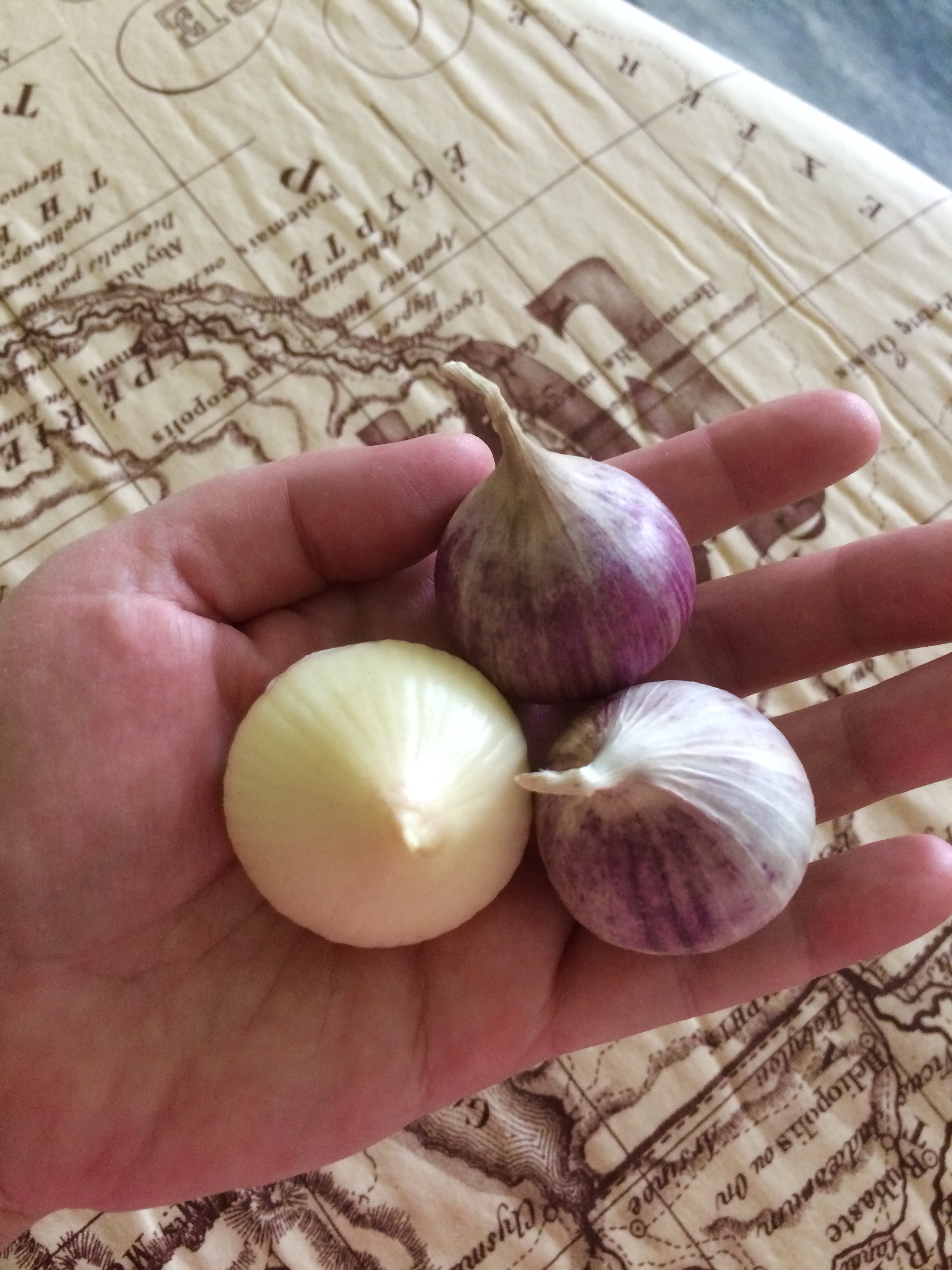 Убираю урожай - уже 2 ряда однозубок (выросли из будьбочек) и 2 ряда некрупных головок (выросли из однозубок) из них выберу крупные зубцы на посадку, и они идут сейчас на еду и консервацию и замариную чуток.