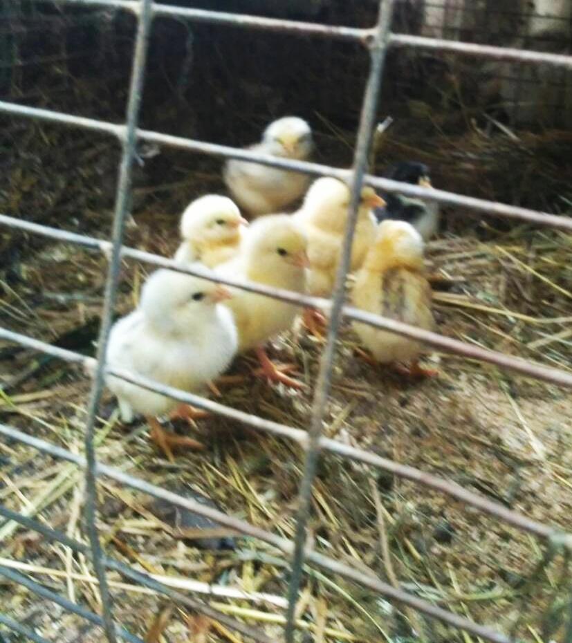 За месяц , примерно, до этого пропала курица, как - то перелетела через рабицу, которой огорожен выгул для кур. Муж походил по соседям, поискал - нету ее нигде. А соседи справа уехали в отпуск на 3 недели. У них дом еще не достроен и больше половины участка травой высокой заросло. Так наша курица, оказывается, устроилась у них в траве яйца высиживать. И в первых числах сентября пришла к нашему забору с цыплятами - 8 штук. Отловили мы их, оборудовали им место в детском домике, выгул в песочнице. А в середине сентября освободили для них от томатов старую теплицу. Курицу - наседку, как яйца начала нести , отправили в общий курятник. А вчера , и цыплят туда переселили ,только в отдельный закуток. Сейчас им , почти 2 месяца. Уже видно, что 2 петушка. Одна курочка белая с черными пятнами.Мама - Леггорн, папа - Кучинский юбилейный.Следующим летом, попробуем специально курицу на яйца посадить, опыт уже кое - какой есть.
