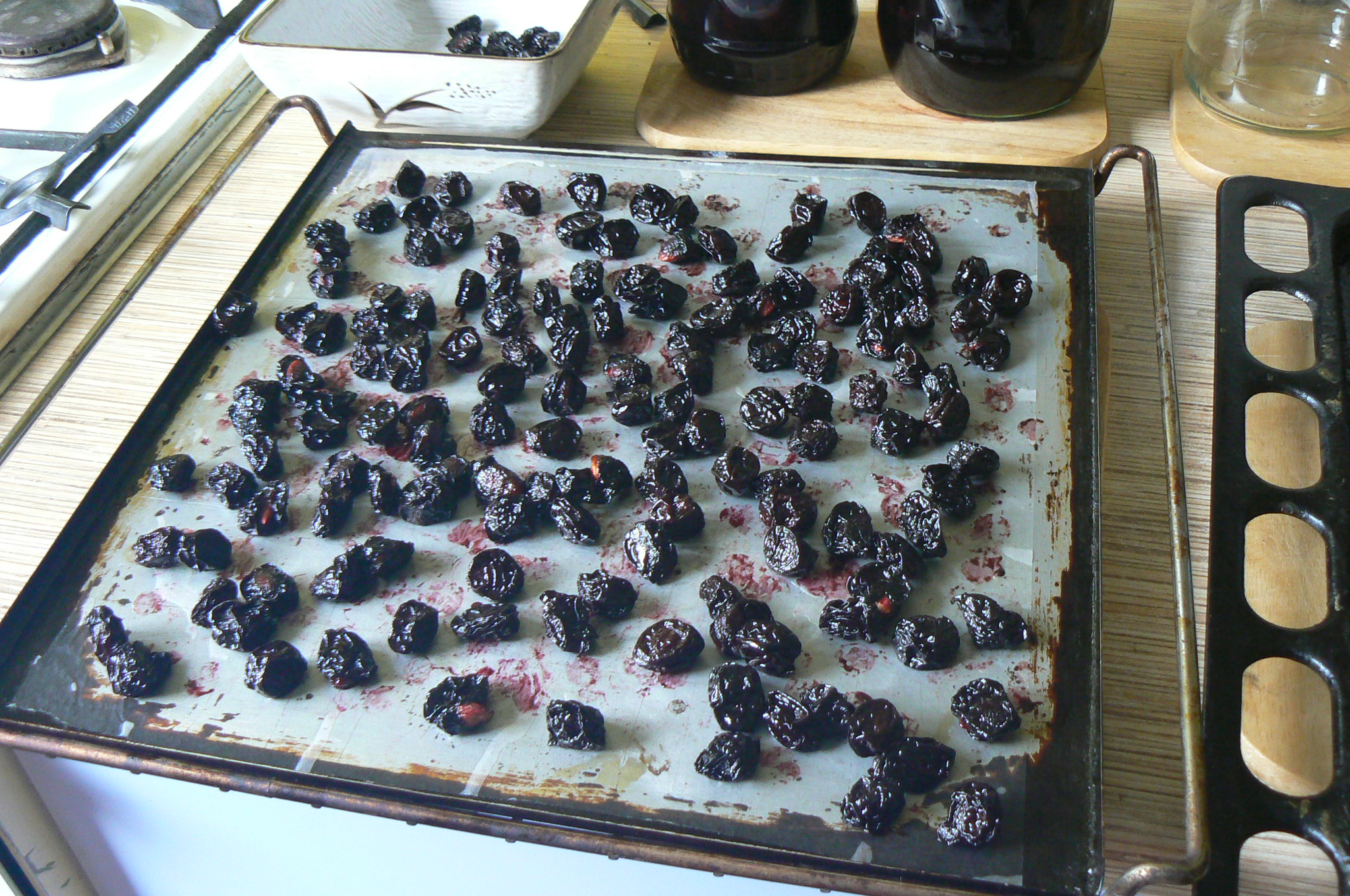 А как это вялить? У меня распотрошенные(с вытащенной косточкой) плоды тёрна в духовке расползлись. А целые высушились.