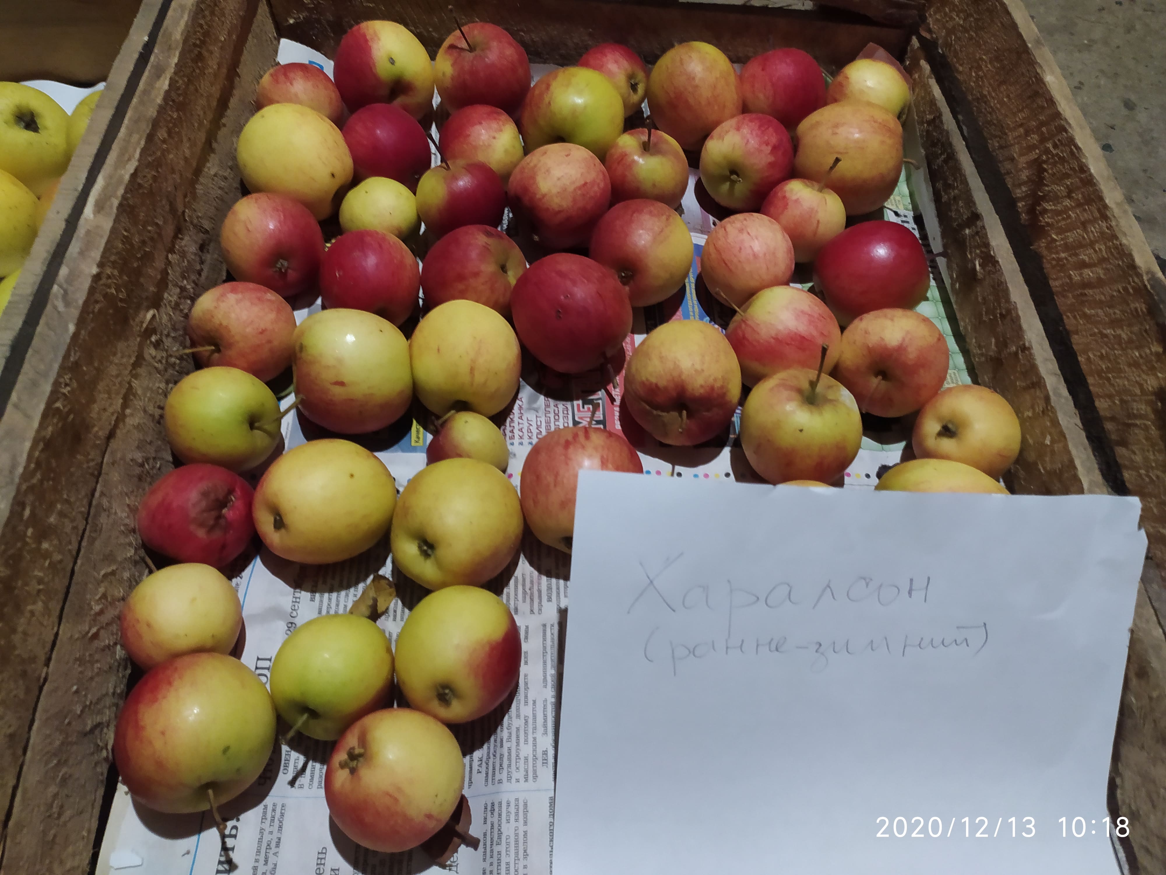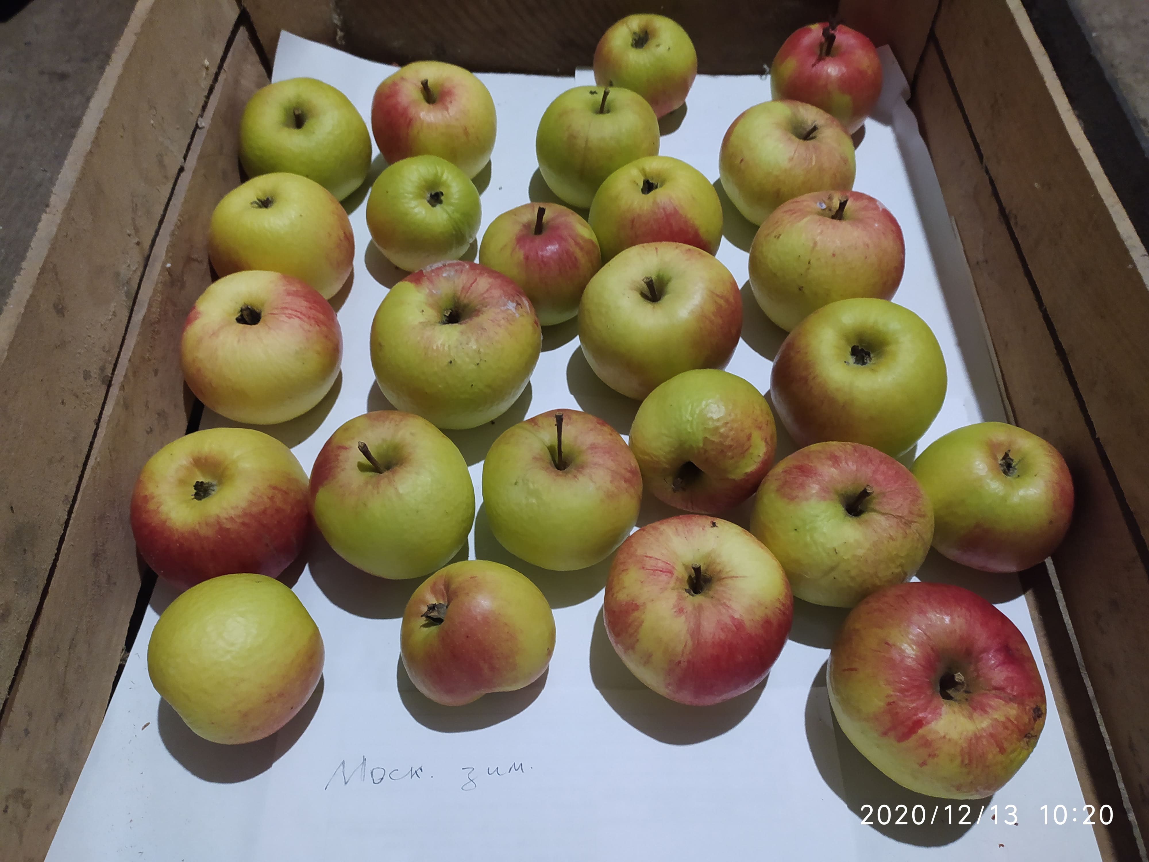 Брянское золотистое вкус так же понравился, у меня показало зимостойкость ниже чем Брянское, но выше чем Кандиль орловский, особенно понравилось, что можно было бы ещё похранить. Так же порадовал американец Кипсейк - потенциал хранения очень хороший, на сегодня яблоки твёрдые, сочные, сладкие. Недостатки: яблочки размером ниже среднего, зимостойкость на грани. В этом году оказался неплох и Харалсон - яблоки твёрдые, сочные, кисло-сладкие, но уже пожелтели, значит хранение заканчивается. Недостатки: яблочки размером несколько ниже среднего, зимостойкость на грани. Фаерсайд ранее показывал себя получше, в этом же году и яблоки мелковаты, и уже вянут при том что ещё зелёные... По зимостойкости он превосходит своих земляков (2-а предыдущих сорта). Похожая ситуация с Московским зимним: вянут ещё зеленоватые яблоки, эти крупнее, но вкусом не блещут, зимостойкость на грани.