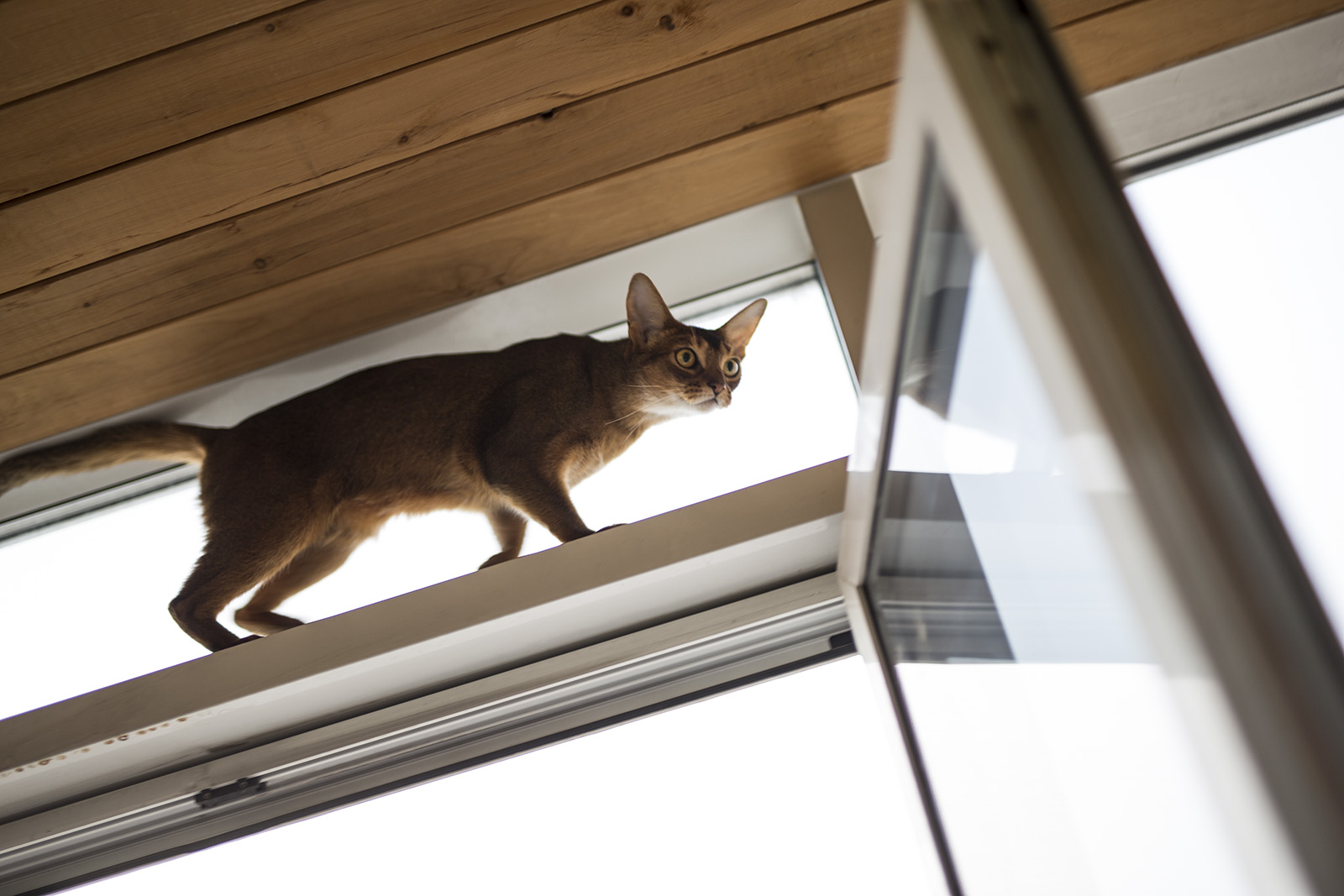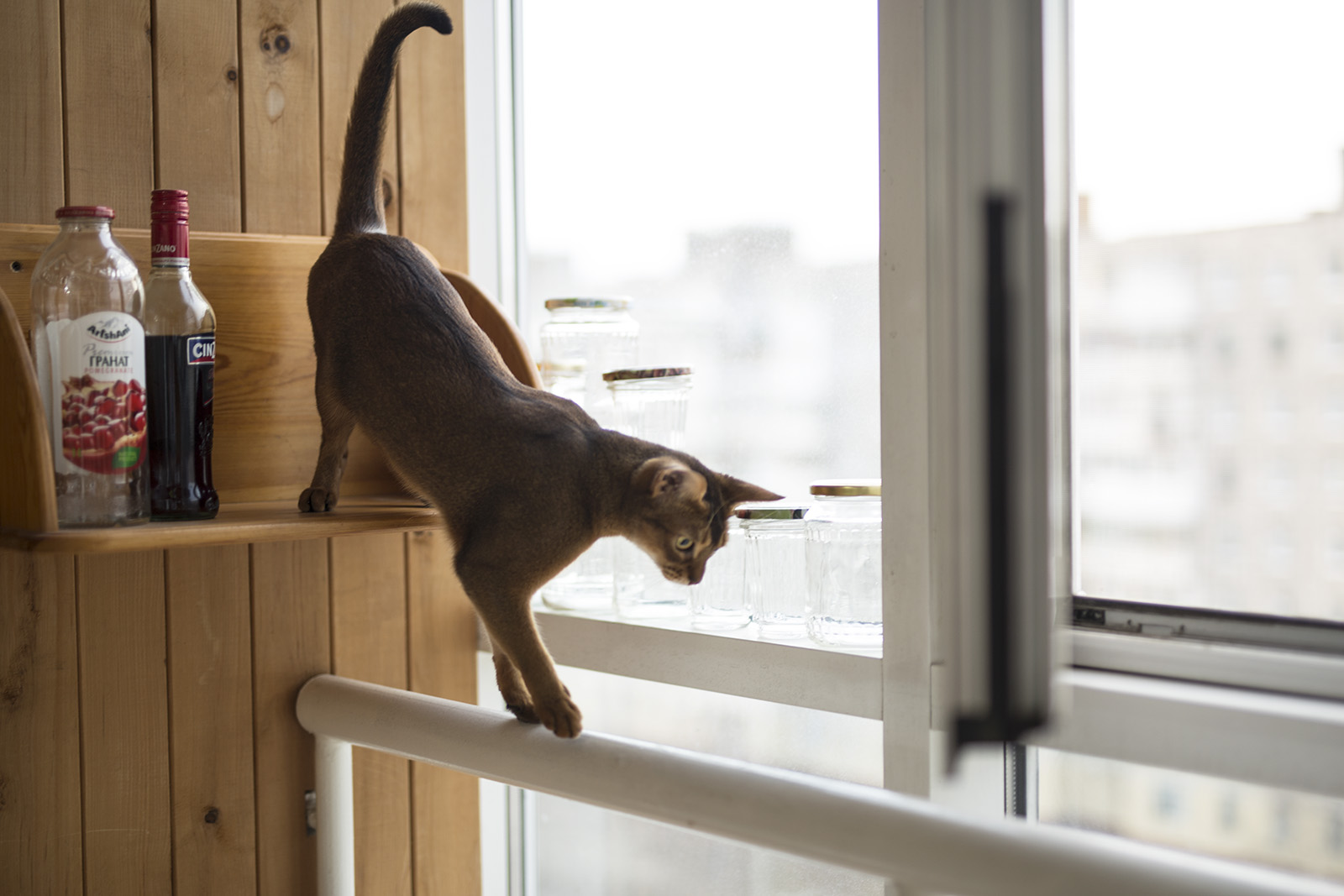 Он активный и скачет везде, а кошка шипит, боюсь по лбу получит