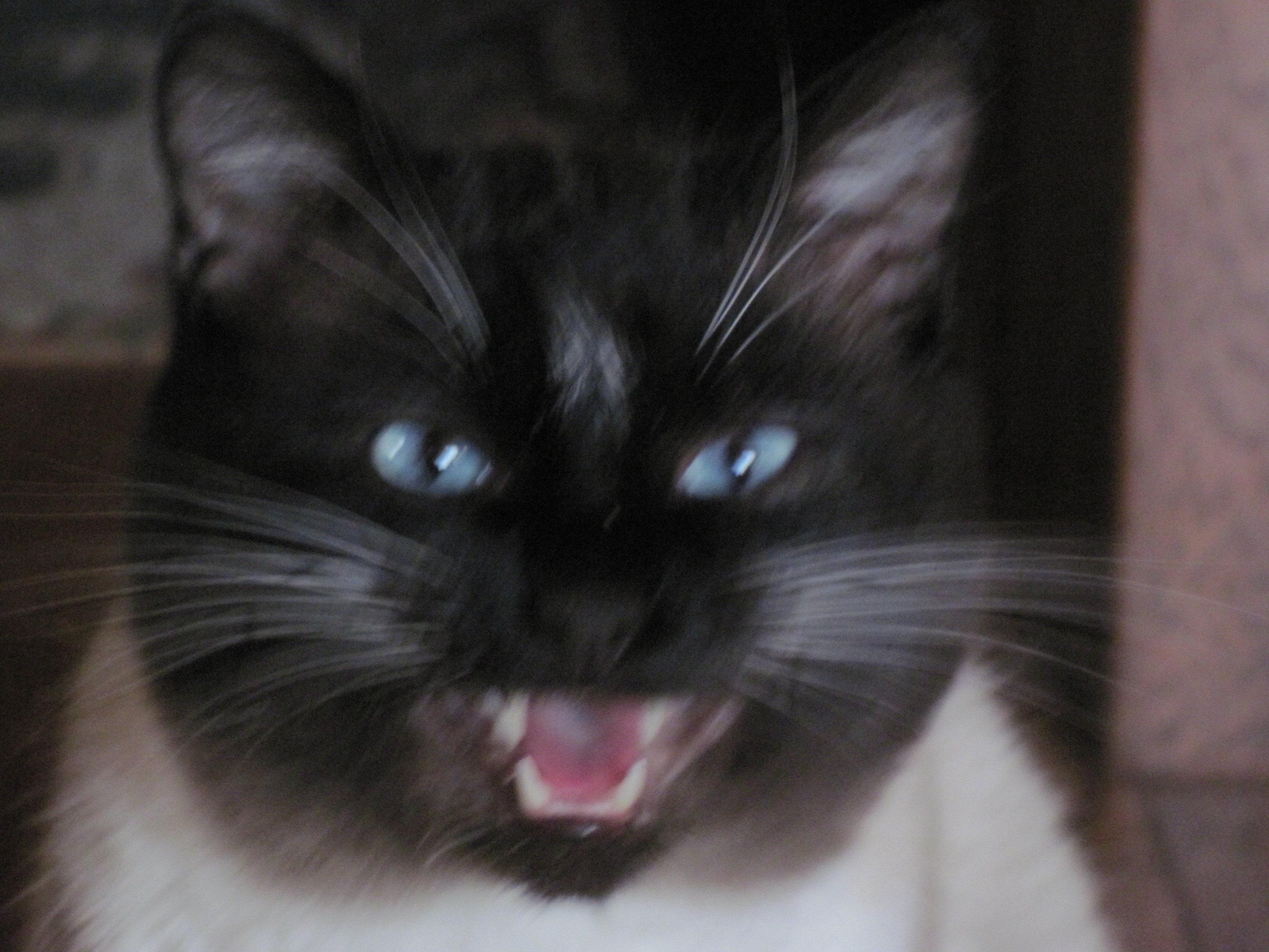 Как ребенок :-( Кошка караулит под дверью. Дверь открываю, кошка проявляет недовольство.
