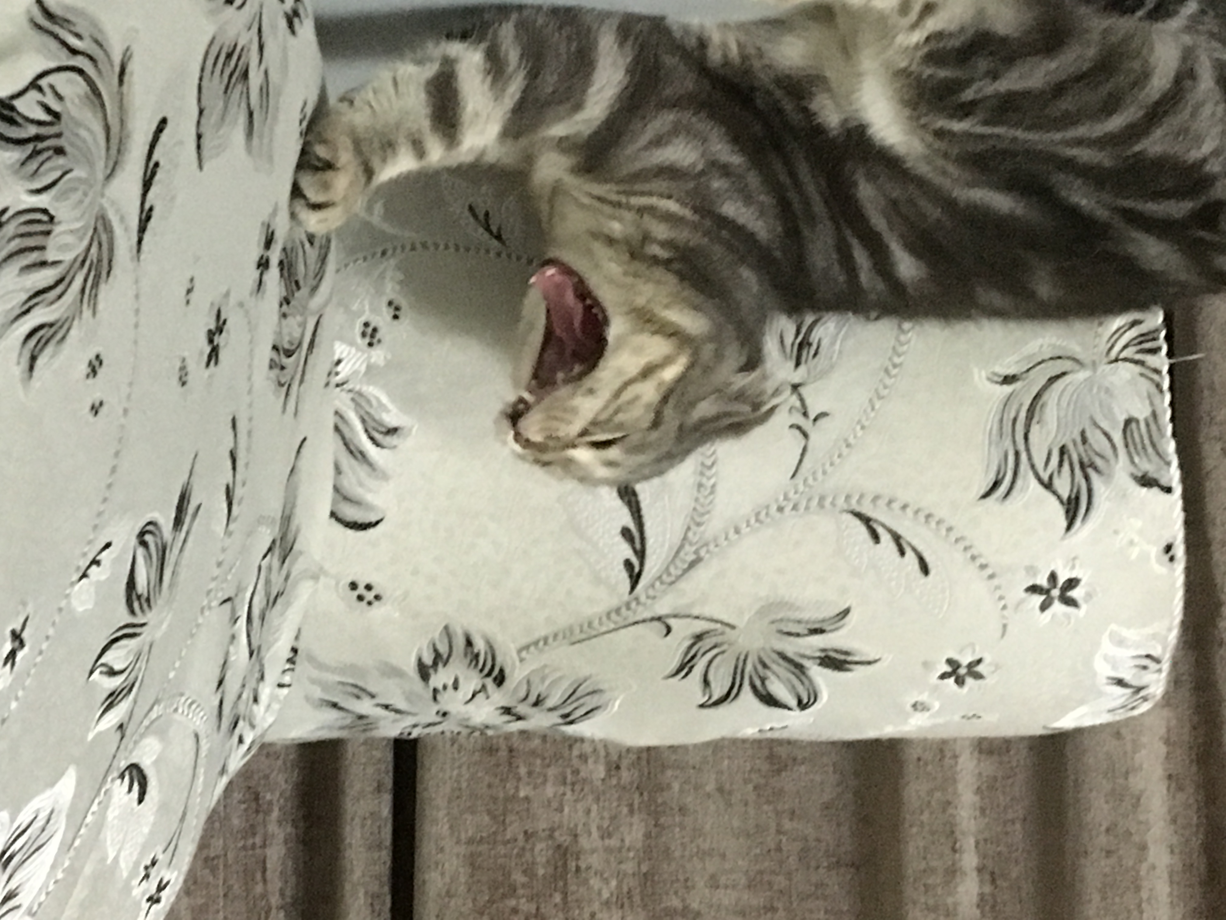 А мы ещё маленькие - 8 месяцев и на улицу выходим только на веранду подышать минуты три. Но когда зеваем - похожи на грозного зверя!