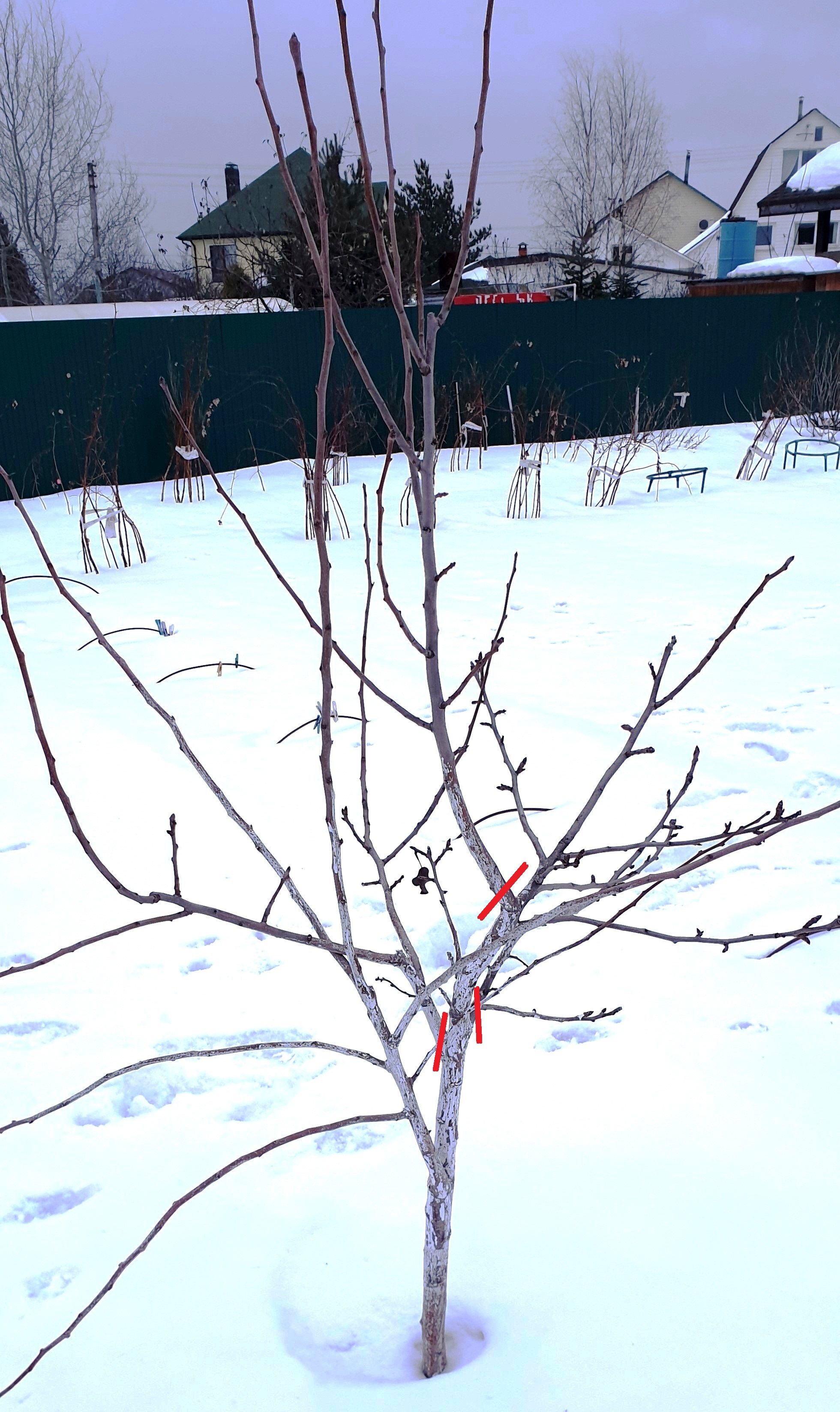 КрыжИр, интересный момент - тогда надо видимо отрезать все, что выше правой ветки с плодушками, чтобы левая ветка могла лучше развиваться, т.к. главный проводник сейчас находится на основном стволе и ветки во втором ярусе тоже есть. Плюс обрезать неудобные ветки с острыми углами.