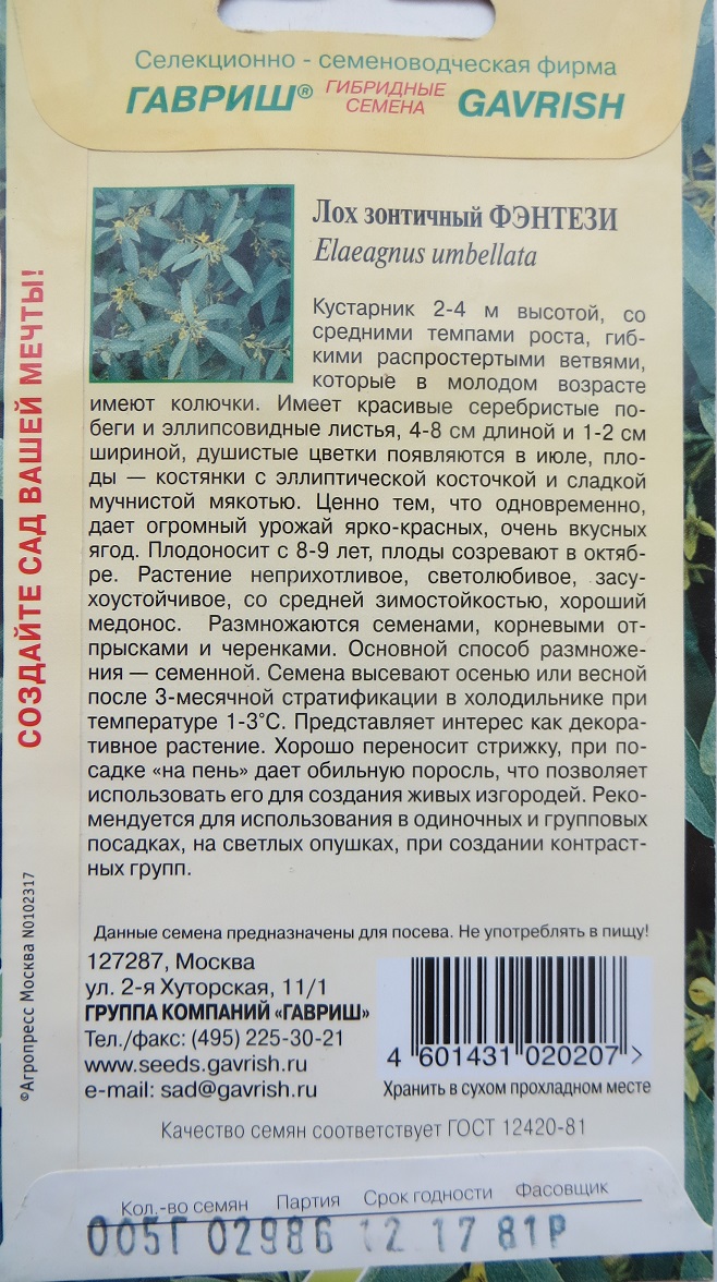 А я всего то хотел узнать что за растение предлагается - на этикетке надпись "Облепиха красная. Шефердия", а на фото - плоды лоха зонтичного)))