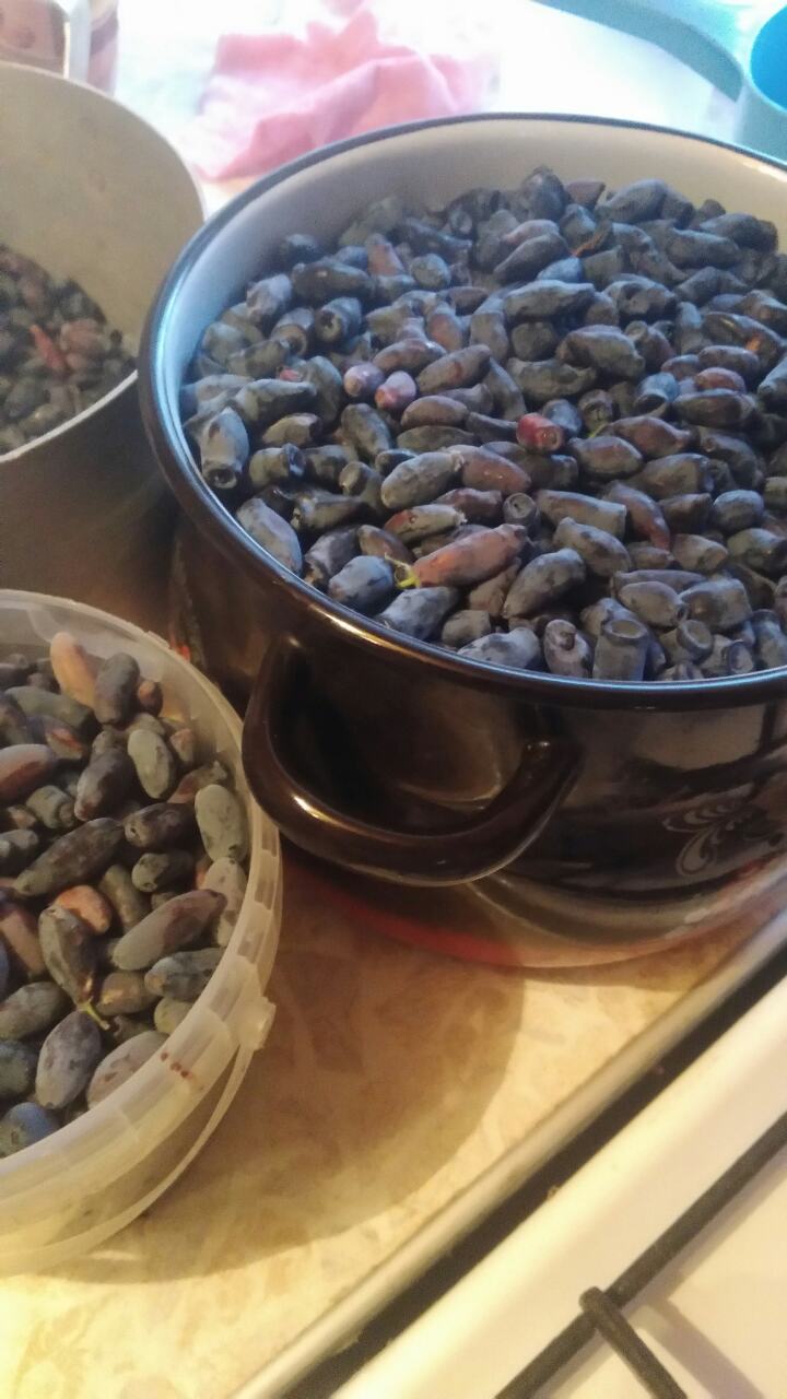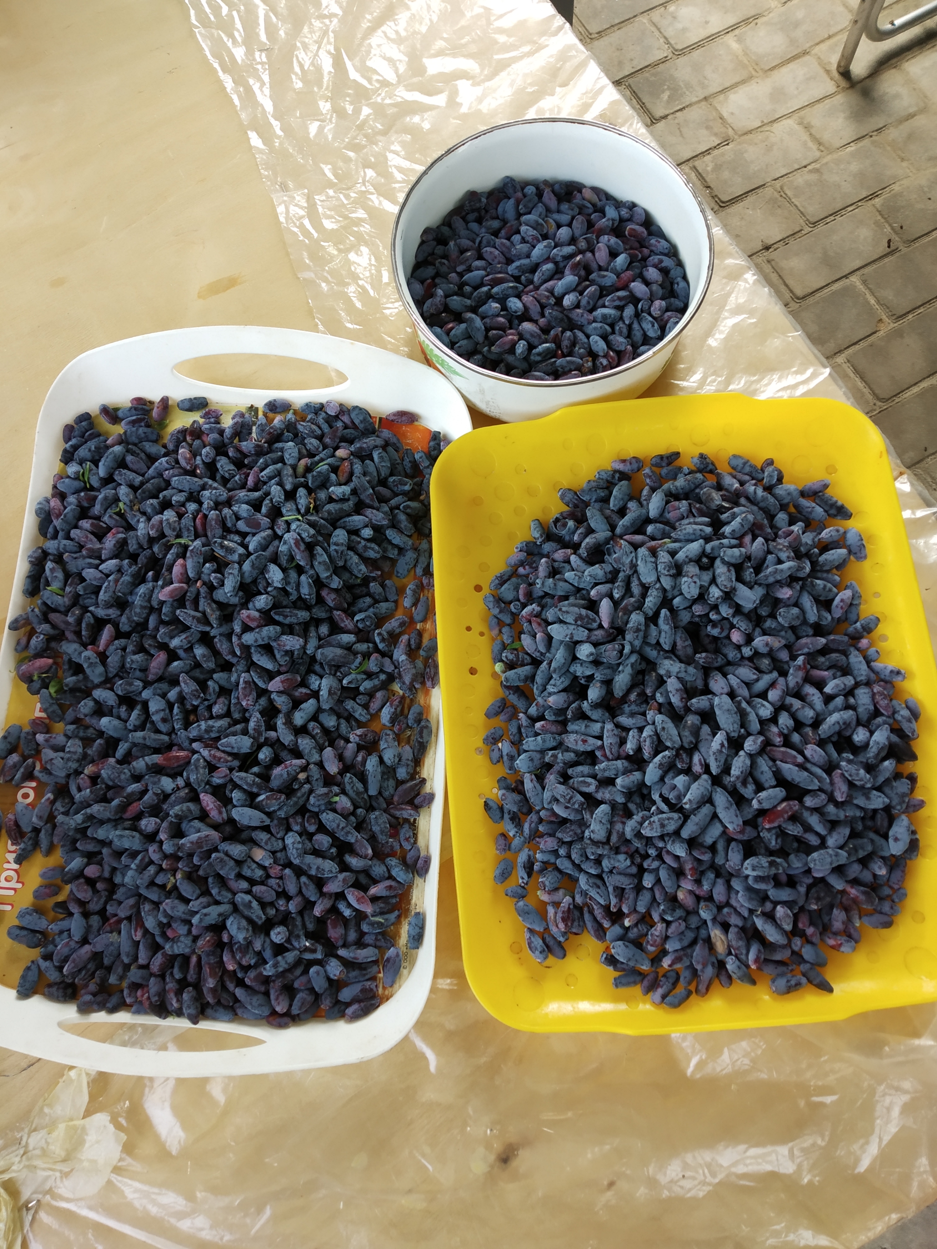 влад дв, Кусты Амур и Алтай посадки 2012 года ( если не ошибаюсь ). Они не отличаются особой урожайностью в высоту метра полтора , но очень объемные и плотные. Давали литра по четыре ( около 2-х кг ). Позапрошлой весной я очень сильно обрезал и проредил Амур в ущерб прошлогоднему урожаю и он дал множество огромных приростов. А этот год очень урожайный для жимолости и плюс приросты. Вобщем так совпало что урожай порадовал. С Алтая собрано почти в два раза меньше. Хоть они и ровесники и плодили примерно одинаково.