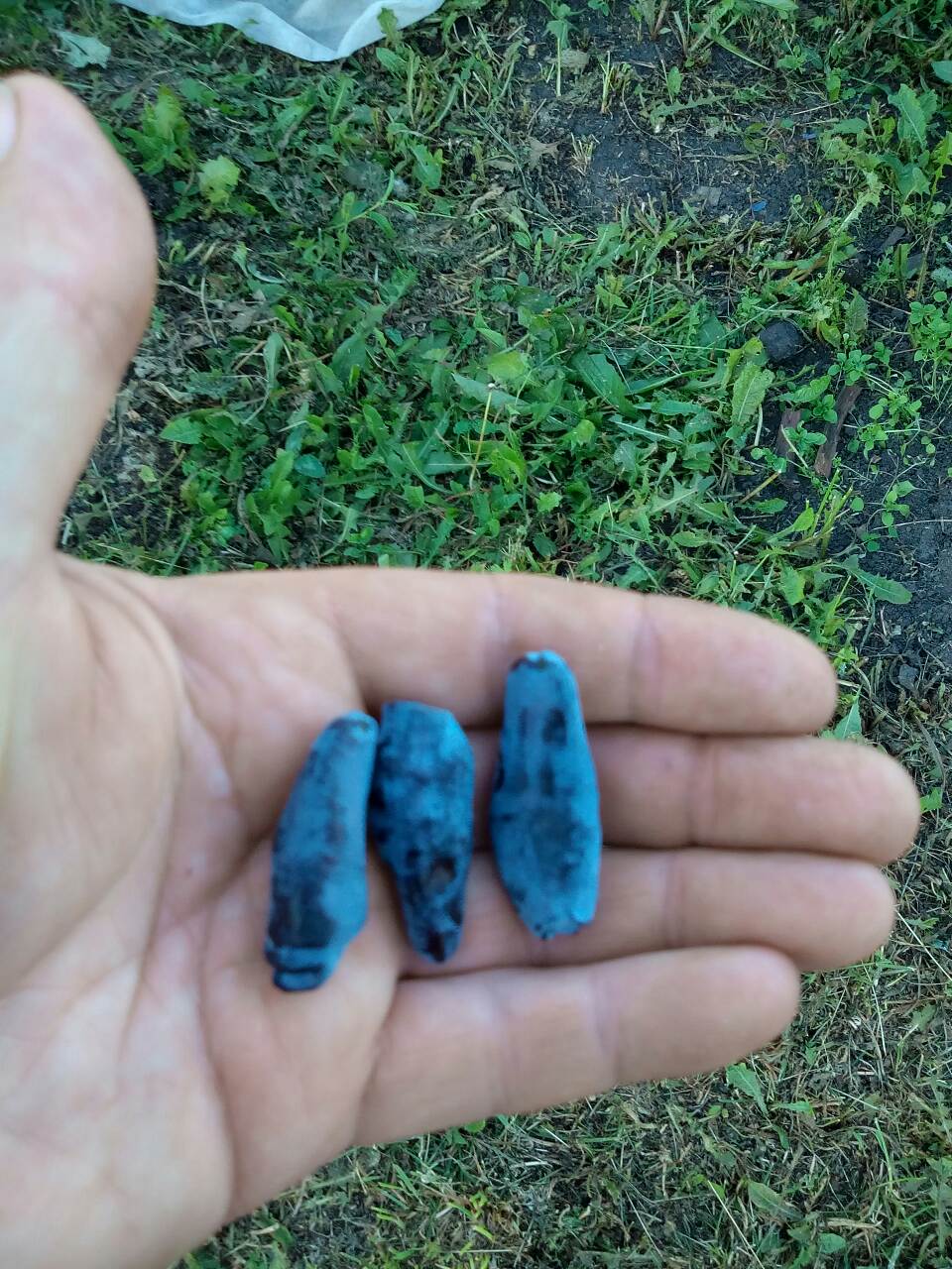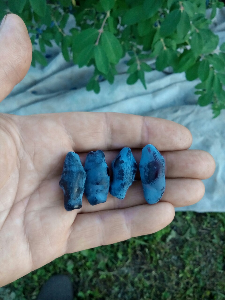 Сегодня в очередной раз снимал пробу с кустов,Югана набирает сахаров,во вкусе появляются какие то фруктовые нотки,ддо выходных самое то думаю наберёт,Дочь Великана пока недобрала сахара,думаю ей до середины следующей недели минимум висеть надо,Уссульга чисто сладкий вкус,на любителя,Стержевчанка пока с кислинкой,но приятной,но ей ещё повисеть надо,ну и старая добрая Голубое Веретено,с лёгкой горчинкой,но уже сыпется,в заморозку самое то пойдёт,есть ещё Синий Шарик,но по форме не похож,больше смахивает на Синий Утёс,если так то и лучше.
