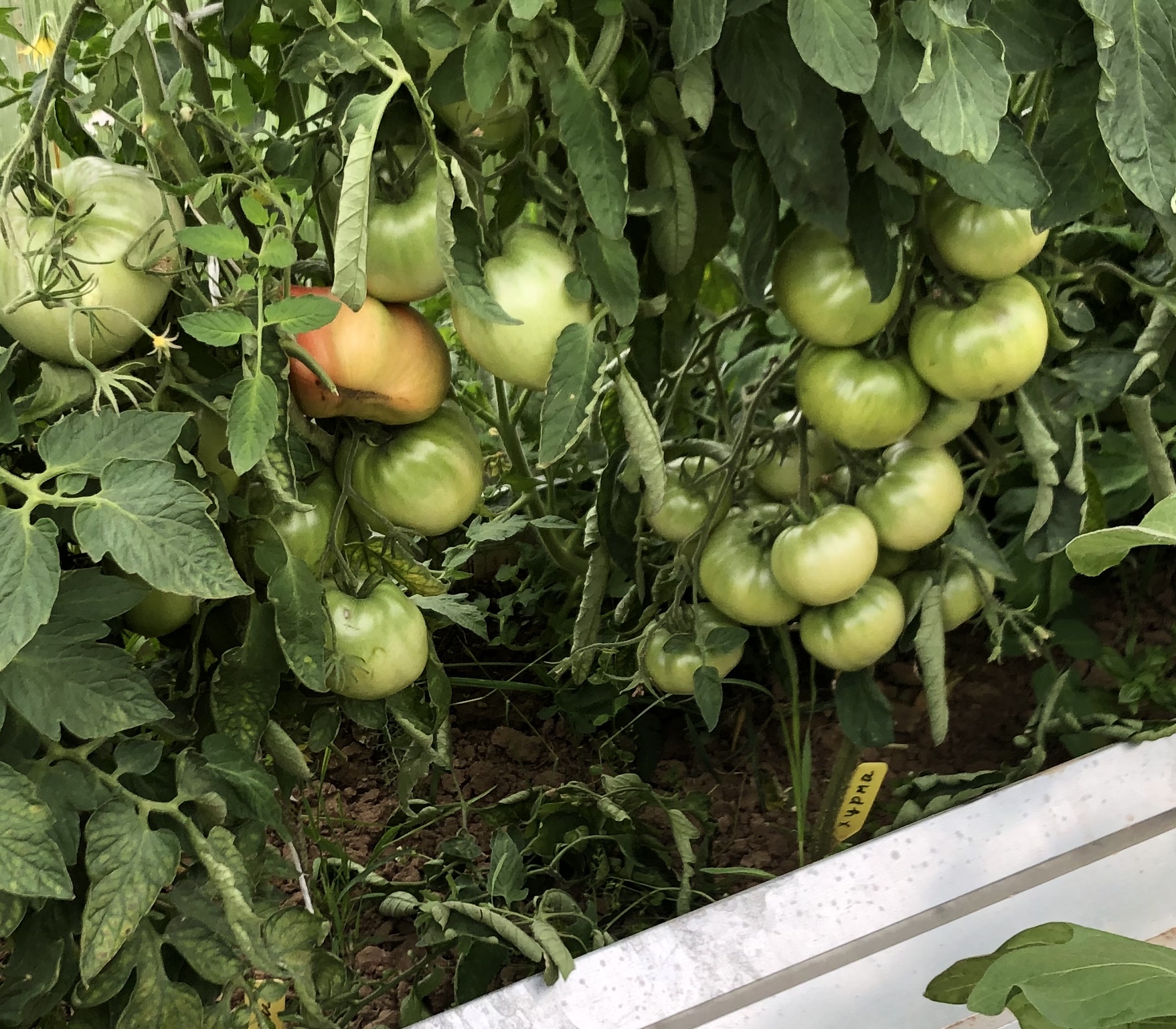 Ровно месяц прошел с первых томатов этого сезона. Чем-то наелись, что-то попробовали... Третий день дегустируем Сокровище инков. Весьма интересный гибрид, красивый, заметно выше среднего размера и главное - реально вкусный. Удивило, что он вызрел в такой холод и практически в пасмурную погоду. Конечно не рекордный размер для этого сорта, но и плодов завязавшихся еще немало... Вот так они выглядят сейчас: