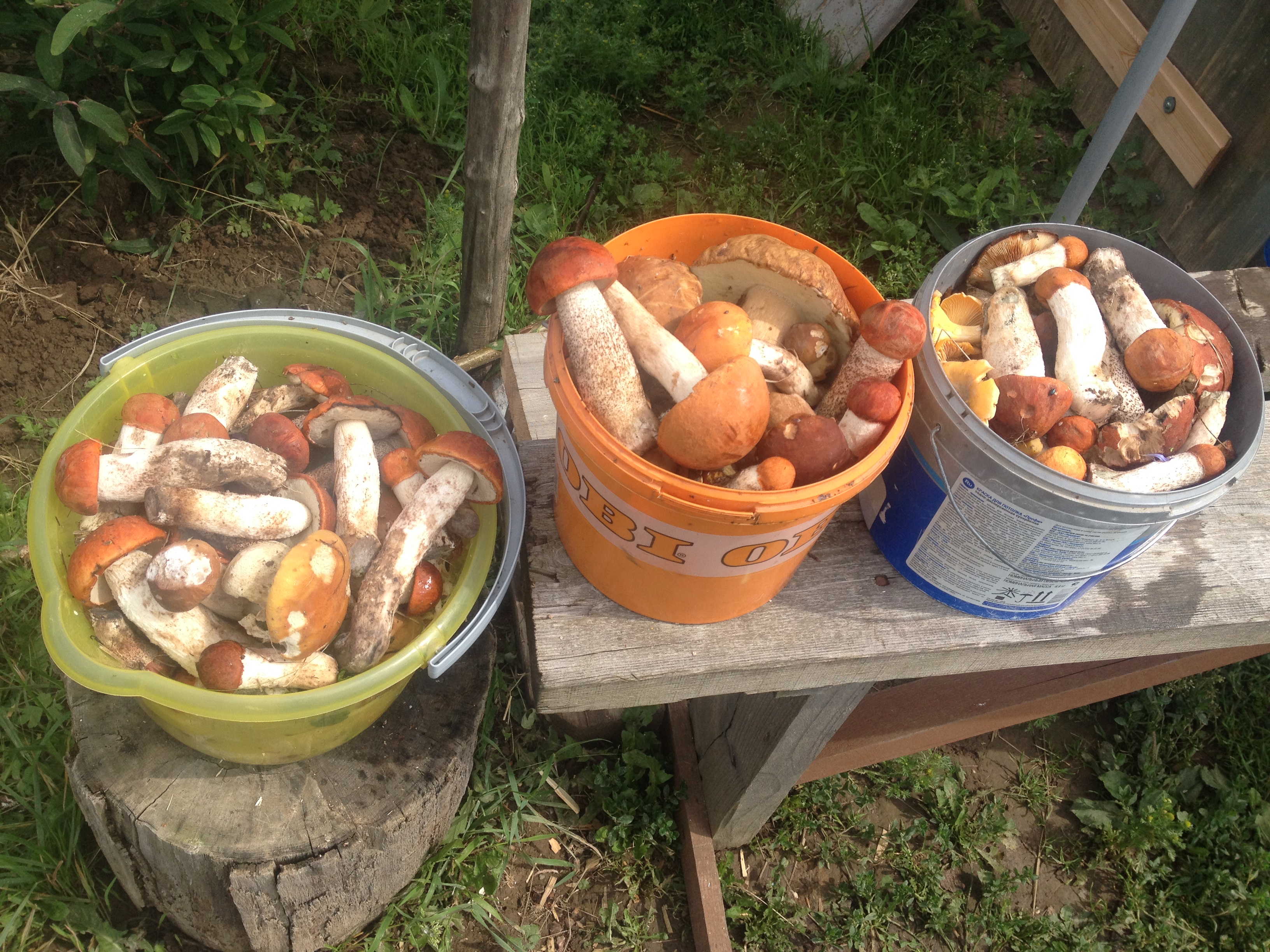 Приехала, папа уже из леса принёс 10 л ведро. Вчера 3 раза бегал в лес ведра полные по 10 л. Мама уже рыдает от изобилия.
