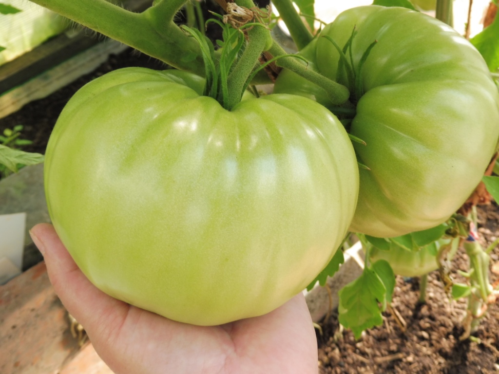 Sveta-waw, потому что не тепло. И у меня такие помидоры гигантских сортов как у тебя. Все крупные, зеленые. А сердцевидные уже розовые