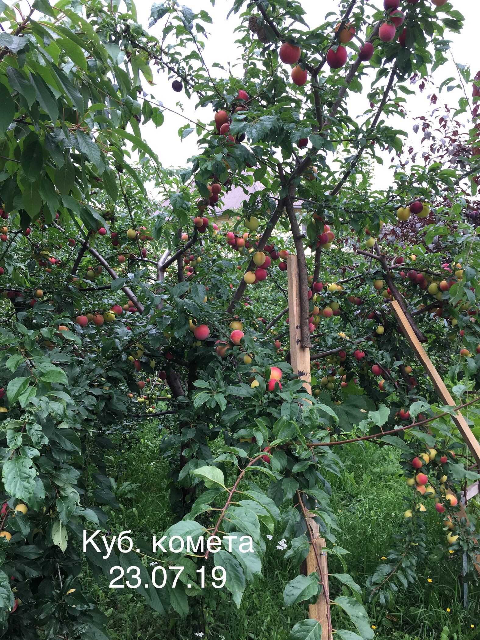 Зарумянилась Кубанская комета привитая на дикой сливе. На корне собственной КК плодов в этом году мало.