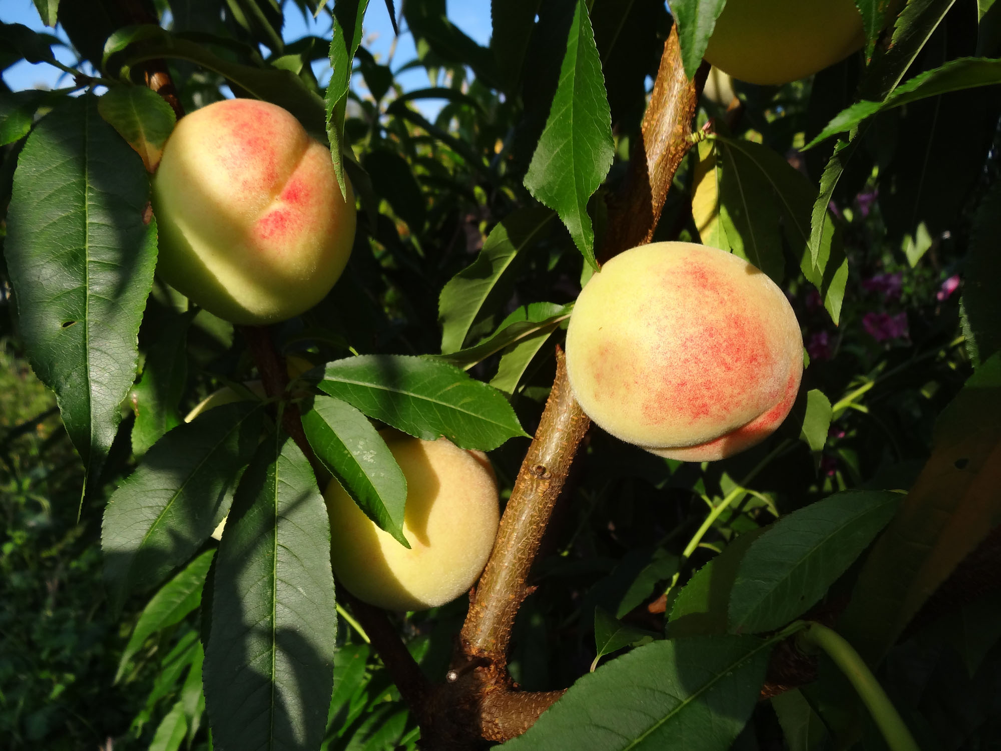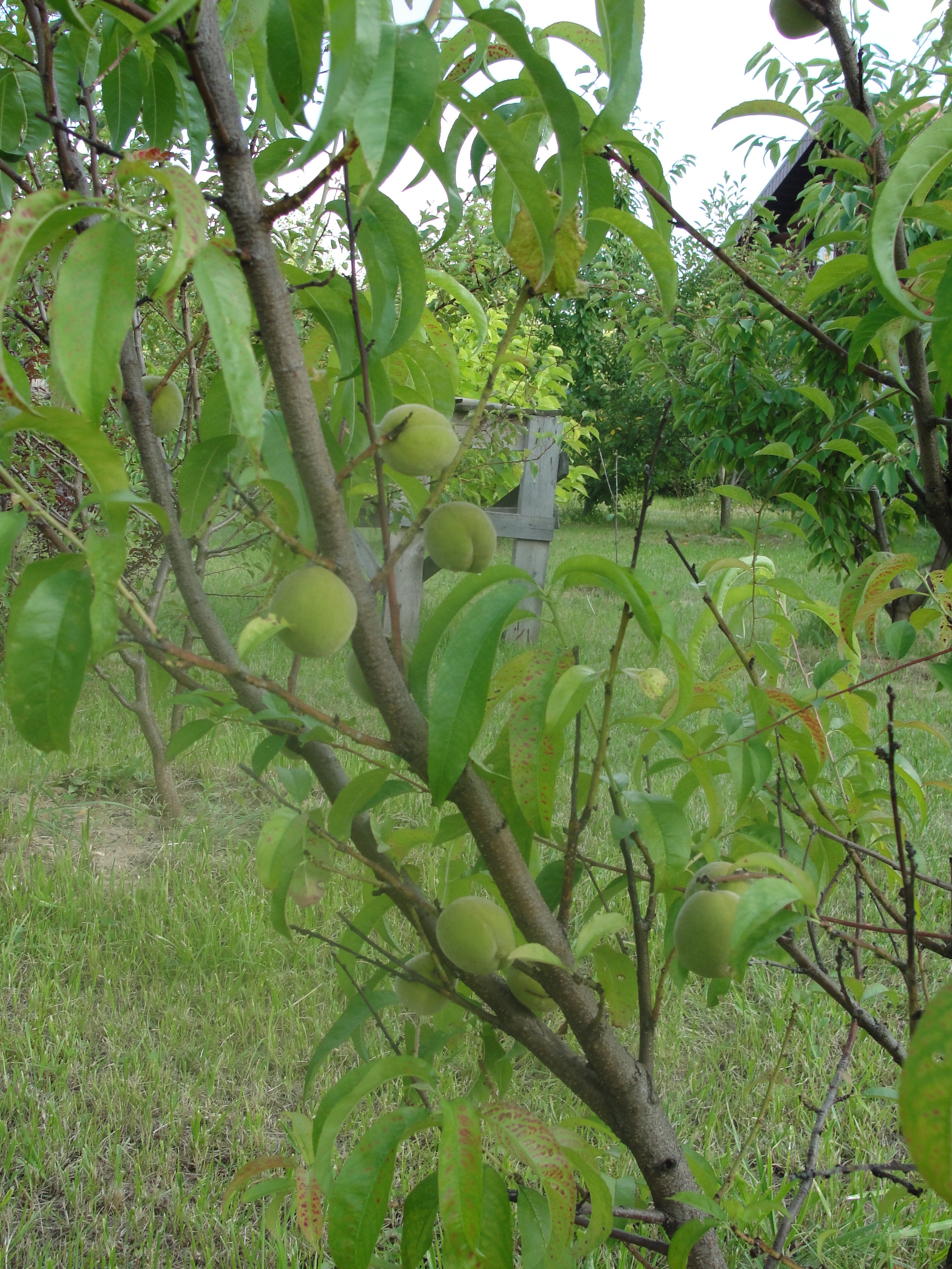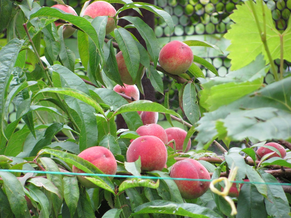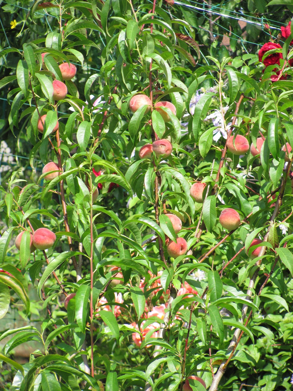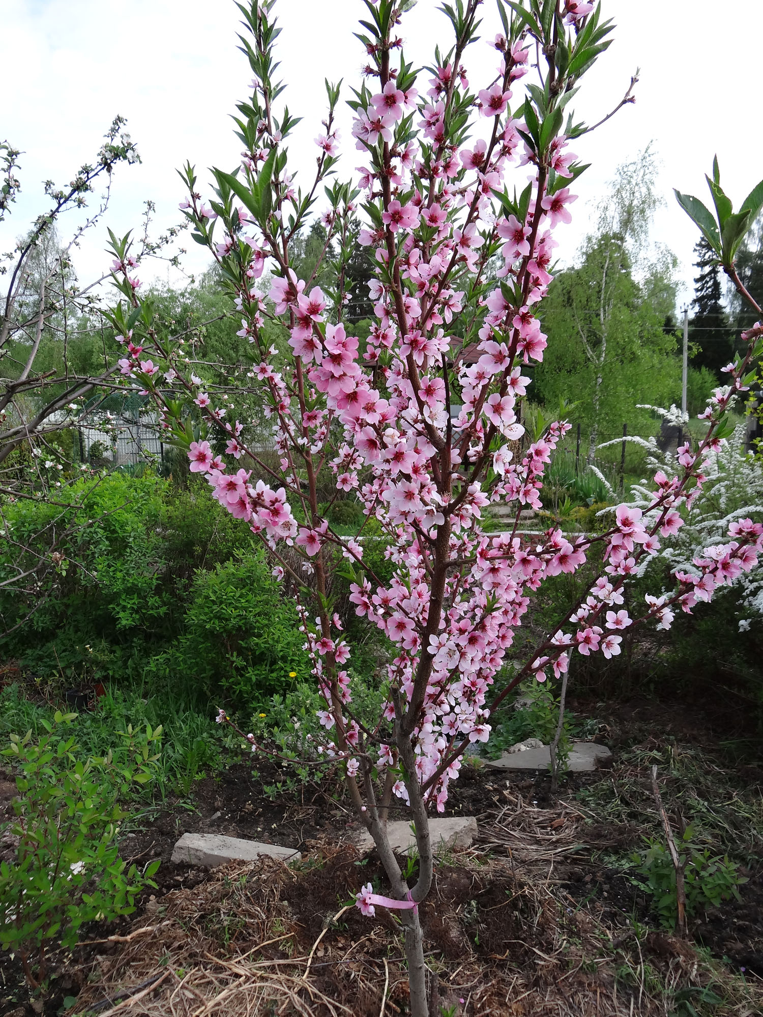 На зиму я два персика укрывала шалашиком, и они оба цвели. При этом Гринсборо цвел очень густо: и я, наверное, оставила на нем много завязей, все они застыли на стадии размера со сливу. К осени пришлось их выбросить в компост. И они почему-то не спели, были зеленые.