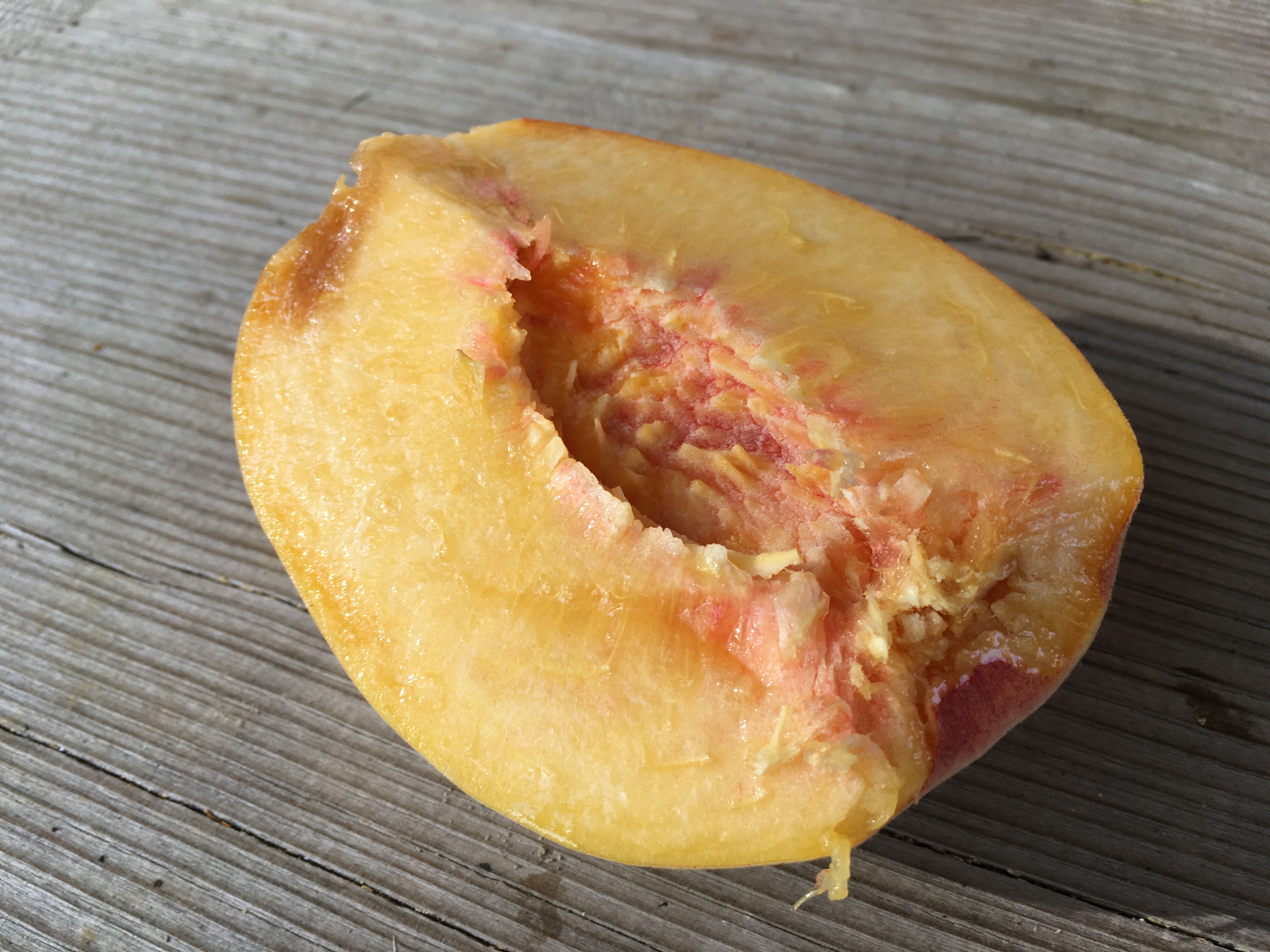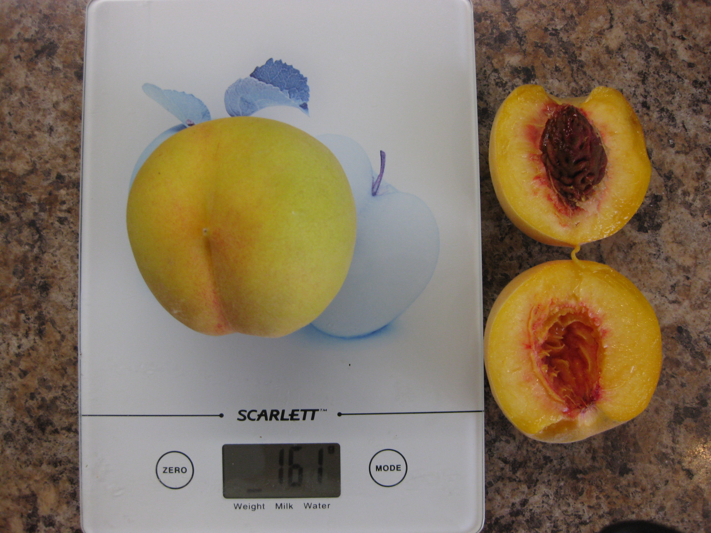 Самый поздний из сортов персика, в моем саду. Покупался в интернет магазине СадНова, как Кросби. Но Кросби раньше зреет, косточка не ярко красная. Склоняюсь, что это Золотой Юбилей.