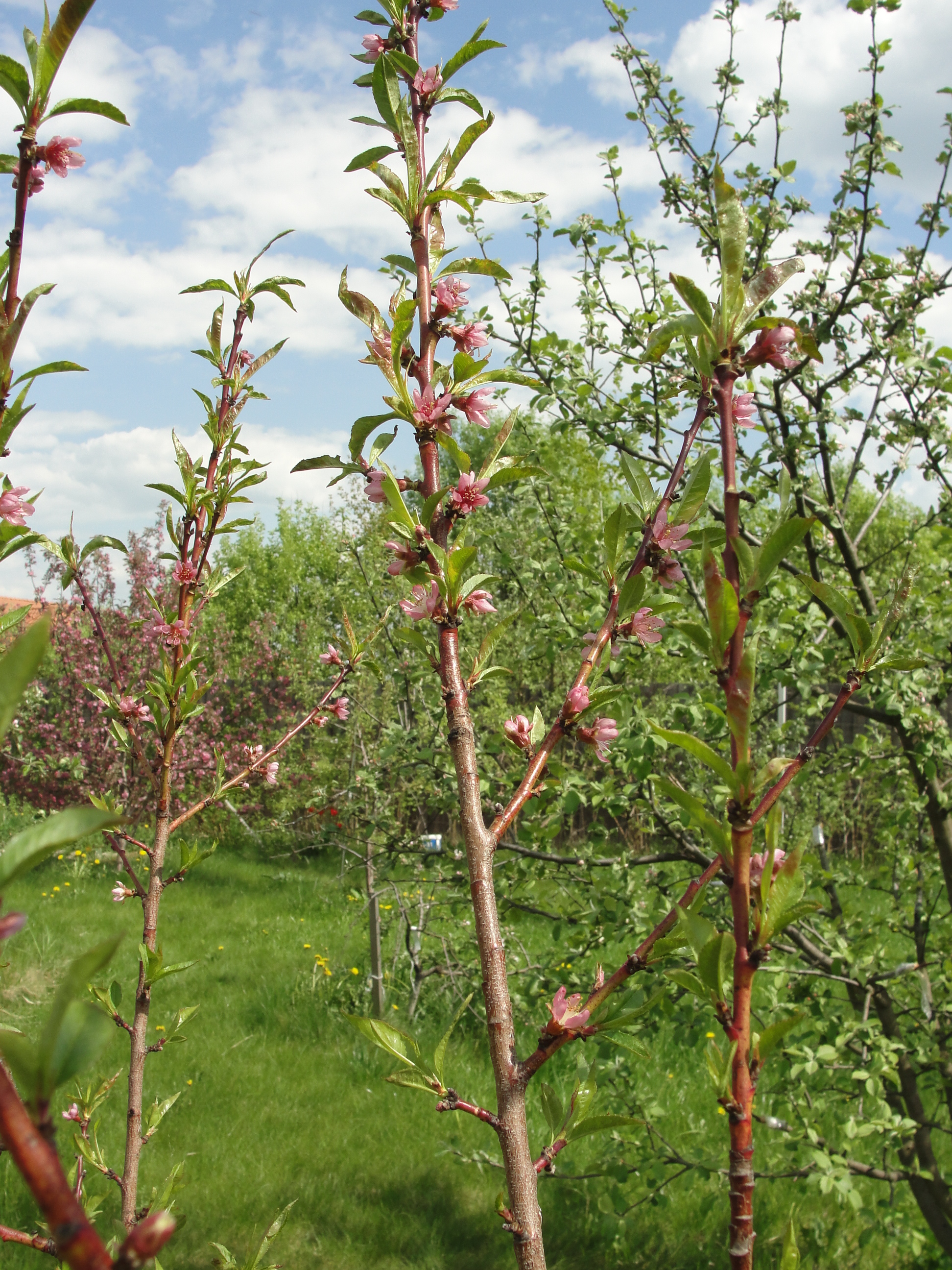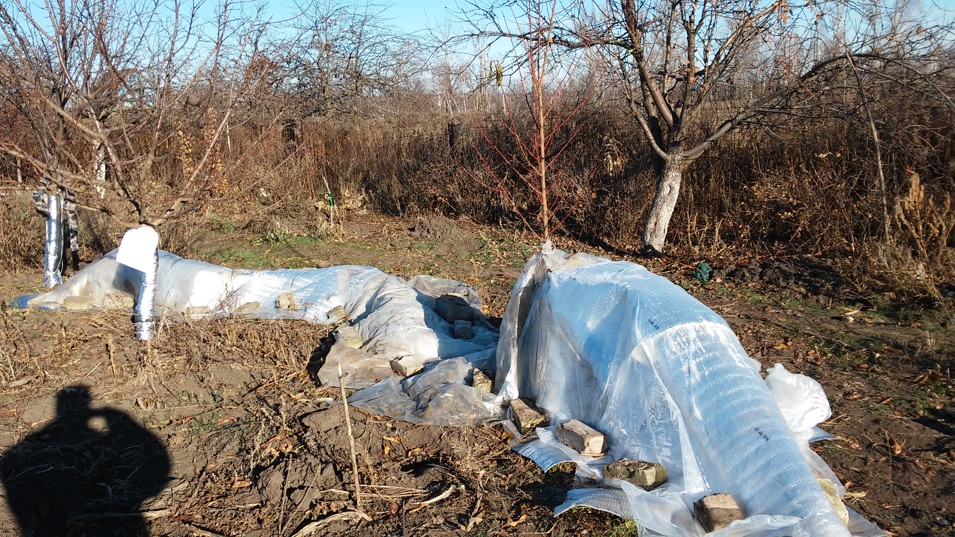 Как такого укрытия нет, прижимаю к земле по мере возможности и все. К январю-февралю, когда у нас сильные морозы, деревья оказываются под снегом. Весной почки живые, набухают, иногда цветут и даже трогаются в рост, но потом высыхают, появляется побег ниже выпревшей части, все заново. Также ведут себя у нас неустойчивые к подопреванию абрикосы, но их хоть можно посадить на бугор, и таким образом уйти от этой напасти. А тут из-за необходимости прижатия к земле ничего не поделаешь, остается только искать форму более устойчивую к подопреванию. Из молодых посадок есть три сеянца которые прошли эту зиму без повреждений. Будем испытывать дальше.