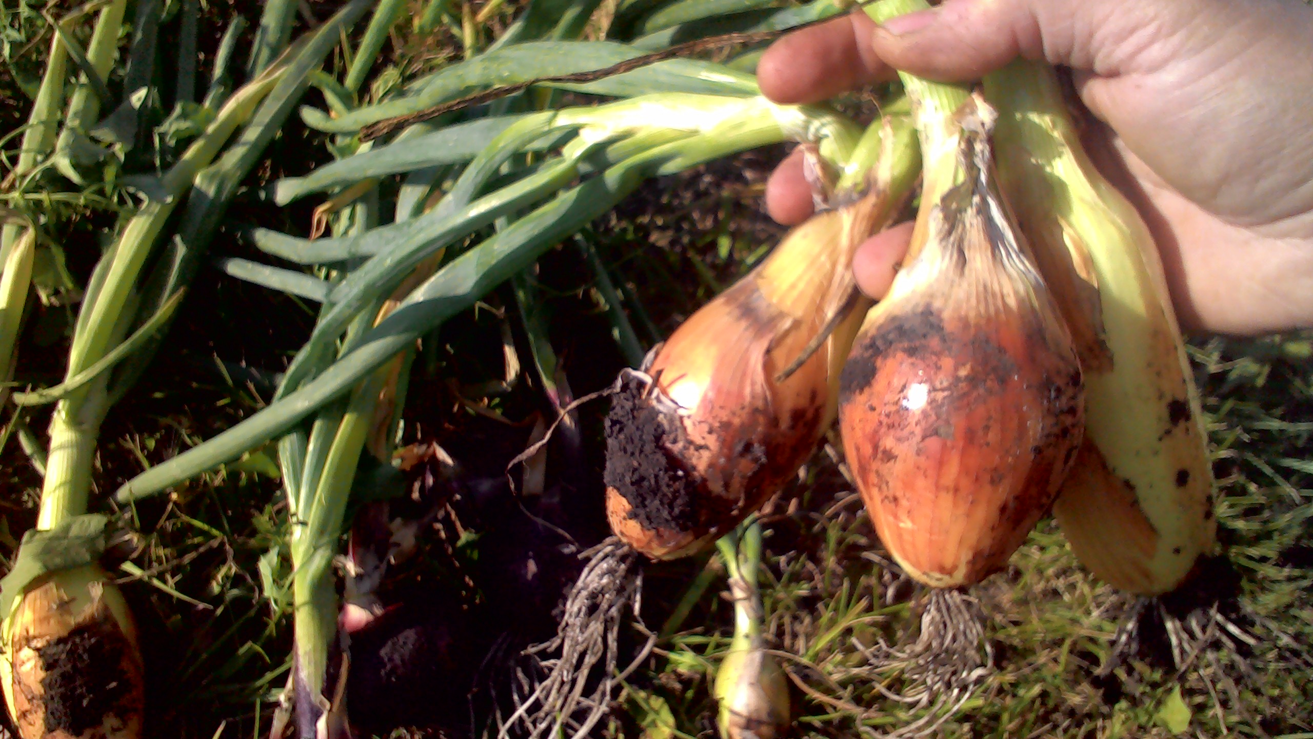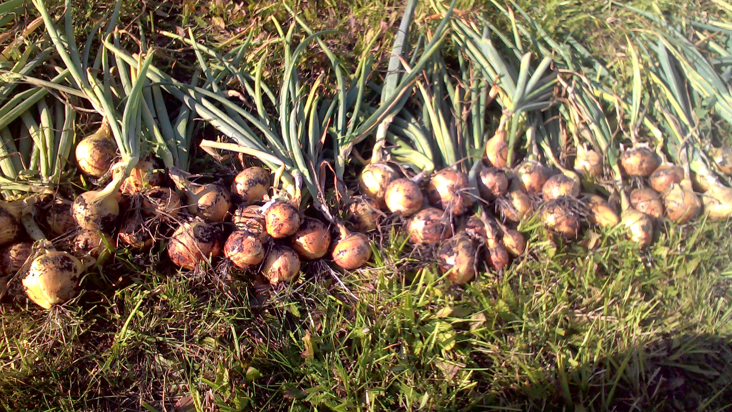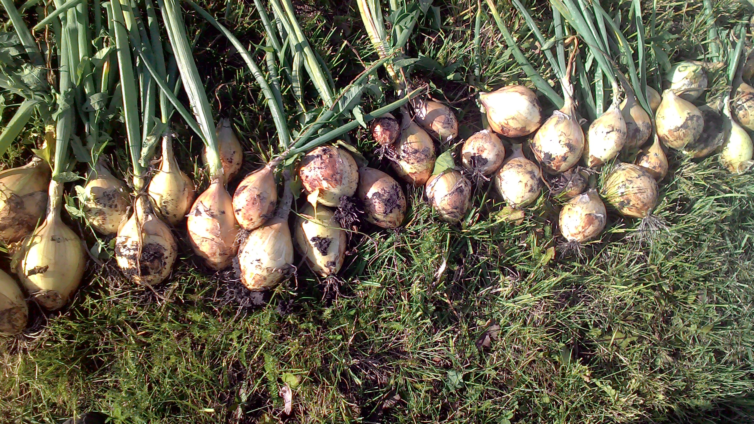 Взвесил урожай. Эксибишена получилось 10 кг с 4 кв.метров. Половина рассады выпала из-за засухи (полить не было возможности). Средний вес луковицы 160 г.