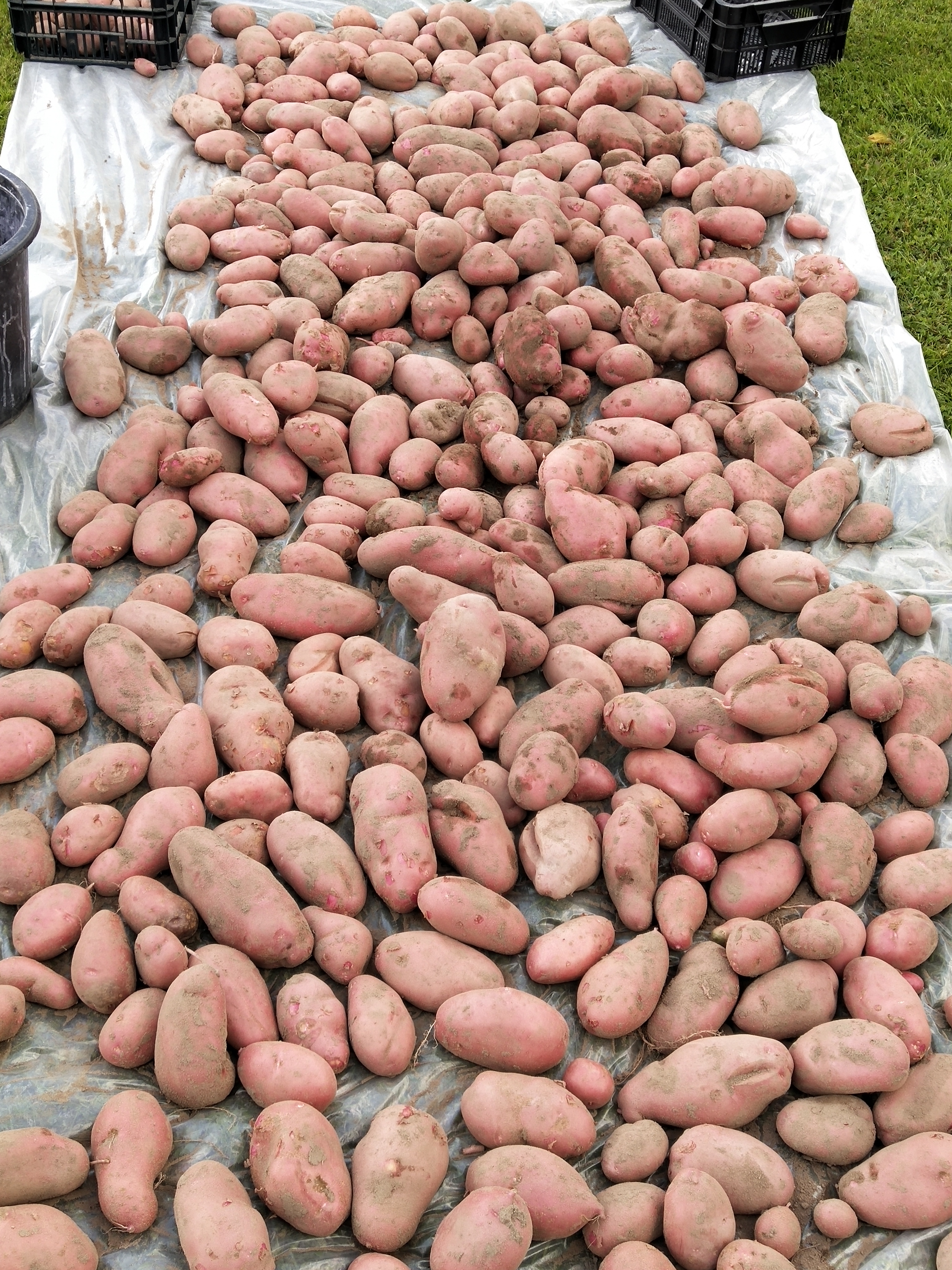 Вчера выкопали картофель,результат не плохой,но мог бы быть и лучше,посадили 16 вёдер,накопали 311,сегодня при тчательном просмотре участка(за бабушками не уследил,каюсь) ещё набрали 3 ведра крупной,семенной 2 ведра и мелочи 6 вёдер,но это скидываю на "утряску".Самый хороший результат показала Королева Анна,Мерлот,Балтик Роуз,Инара.Среднячки Вега(клубни крупные но мало)Венди(клубней много,но много семенной и мелочи),Откровенное разочарование Пикасо,клубни крупные,но все какие то уродливые,Славянку пока не понял,единственный сорт у которого шкурка ещё не окрепла совсем,клубни очень крупные,но не ровные,глазки глубокие,хотя урожайность и устойчивость к болезням на высоте,посмотрю ещё годик,но конечно тому же Балтик Роуз по товарности клубней она не конкурент.Гусар показал себя не плохо,но больше сажать не буду,как и Снегирь,много мелкой и неровной картошки.Год был для меня не простой,сначала столкнулся с Совкой,потом не известная болезнь(ризоктанариоз пока не потвердился),затем залили дожди(клубни задыхались) теперь буду держать в сарае недели три не меньше,пусть вылёживается хорошенько.