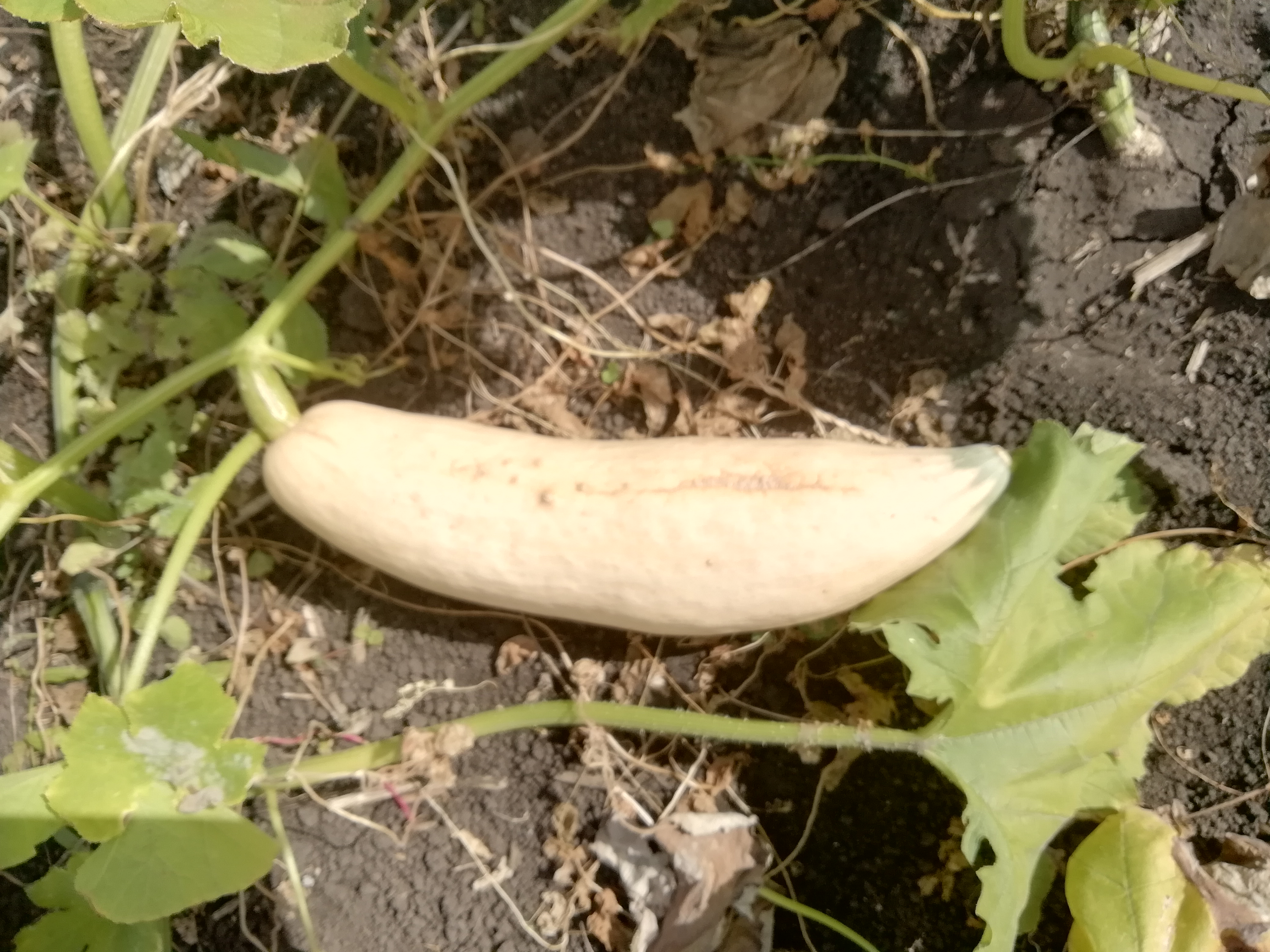 Наш любимый сорт, раньше в поле с картошкой такую сажали, сейчас уже редкость. Меньше своего возможного размера т. к. посажены были в худшее место, в том месте всё плохо растёт, в принципе и садил туда чтобы размерчик получился удобный для духовки, едим печёную и мясо тушим с овощами. Зрелость в самый раз для длительного хранения. Ещё дома таких 3шт, раньше увёз. Среди них выросли и кабачки, переопыление будь оно неладно.