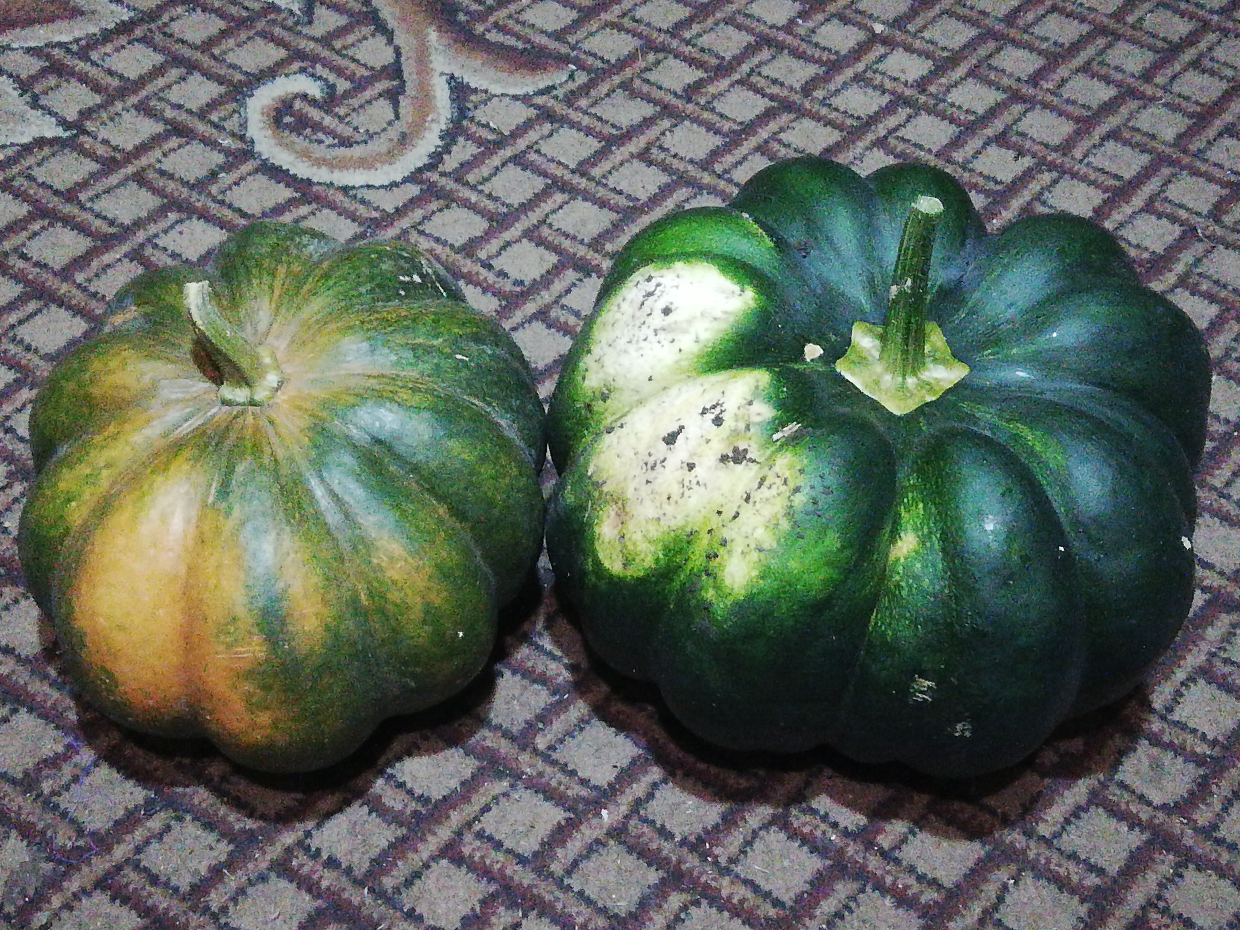 Ваше первое фото радует. Только не стоит тяжелыми тыквами сдавливать сочные недозревшие. Если росли на подложках, а не на сырой земле, не переохладились и не перепили воды перед уборкой, высушенные в тепле в один слой на картонке, немного недозревшие тыковки вида КП могут долежать съедобными до весны.