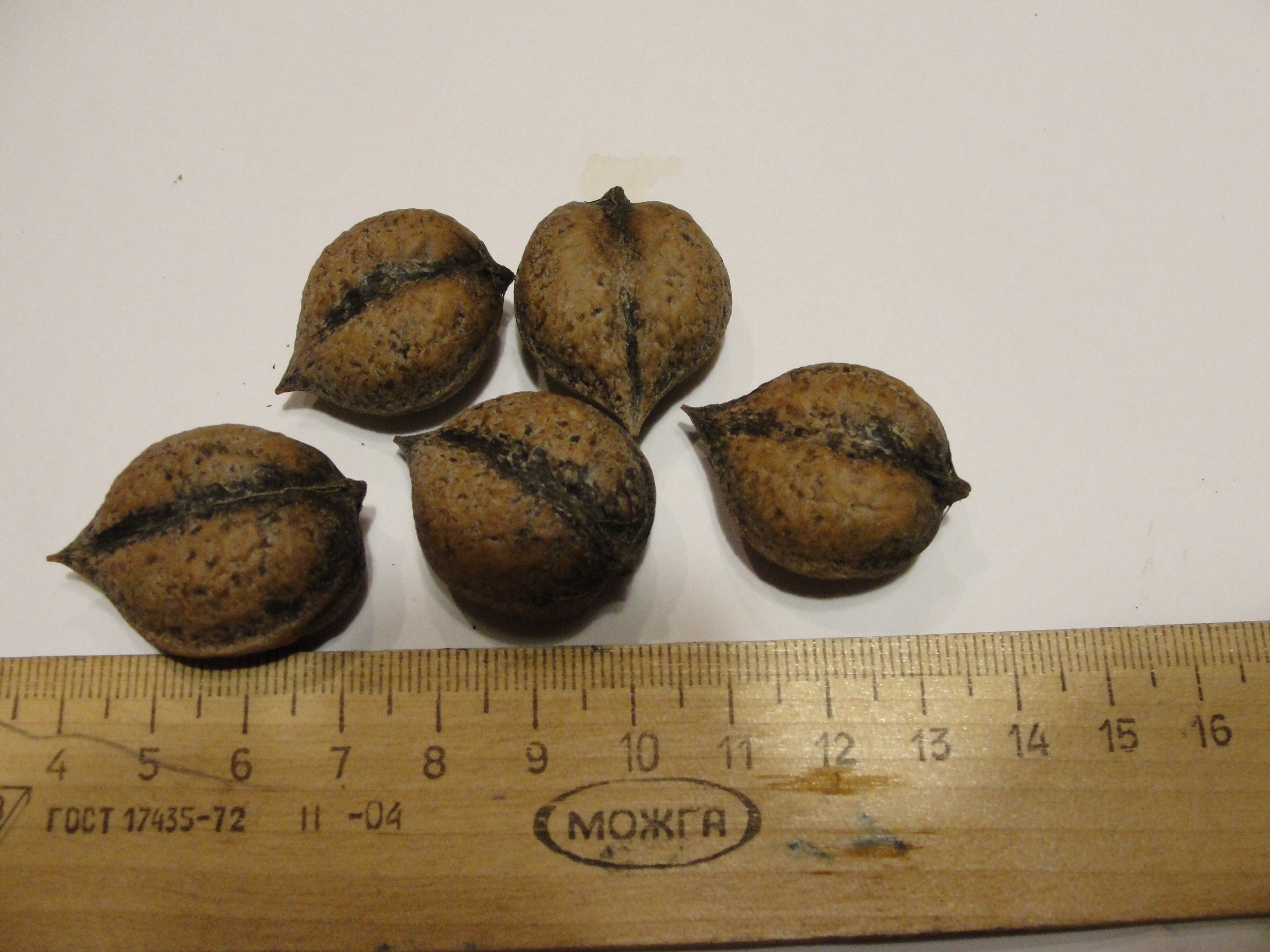 На фото орехи с четырех деревьев одного сорта, форма плодов повторяется уже не один год , у соседей ( опылители, кроме моих ) растут деревья других сортов.