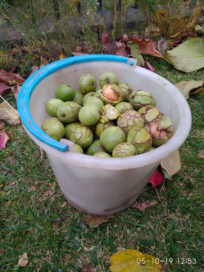 Как поздно. У меня последние были собраны на прошлой неделе. В саду самые ранние стоят уже без листвы, многие с желтыми листьями, только, гибрид черного и грецкого Дули, сердцевидные, и несколько грецких, с зелеными листьями.