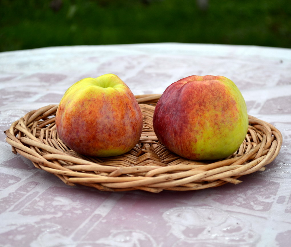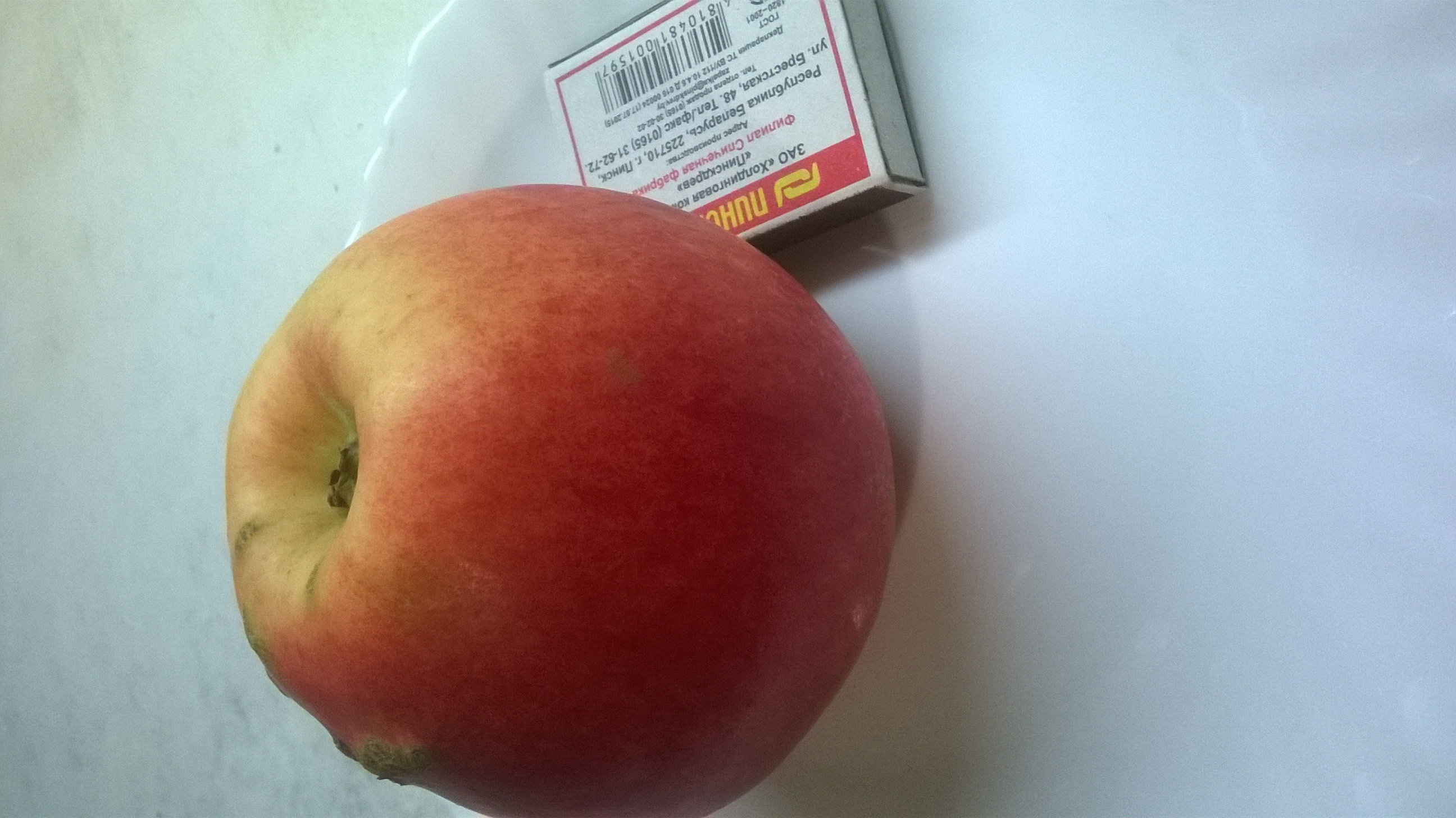 Радогость Сорвал себе яблоко не самой типичной формы, само как-то в руку легло. Яблоко крупное - 347 г., думаю основная масса яблок на дереве была в диапазоне 200-250 г. Внешне яблоки очень симпатичные. Вкус очень понравился - гармоничный, кисло-сладкий с приятным послевкусием. Мякоть плотная, сочная. Если бы оценивал в баллах, то поставил бы Радогости на 0.1 балла ниже чем ХК исключительно за счет чуть меньшей сочности. Очень достойный вкус, хочу себе такой сорт.