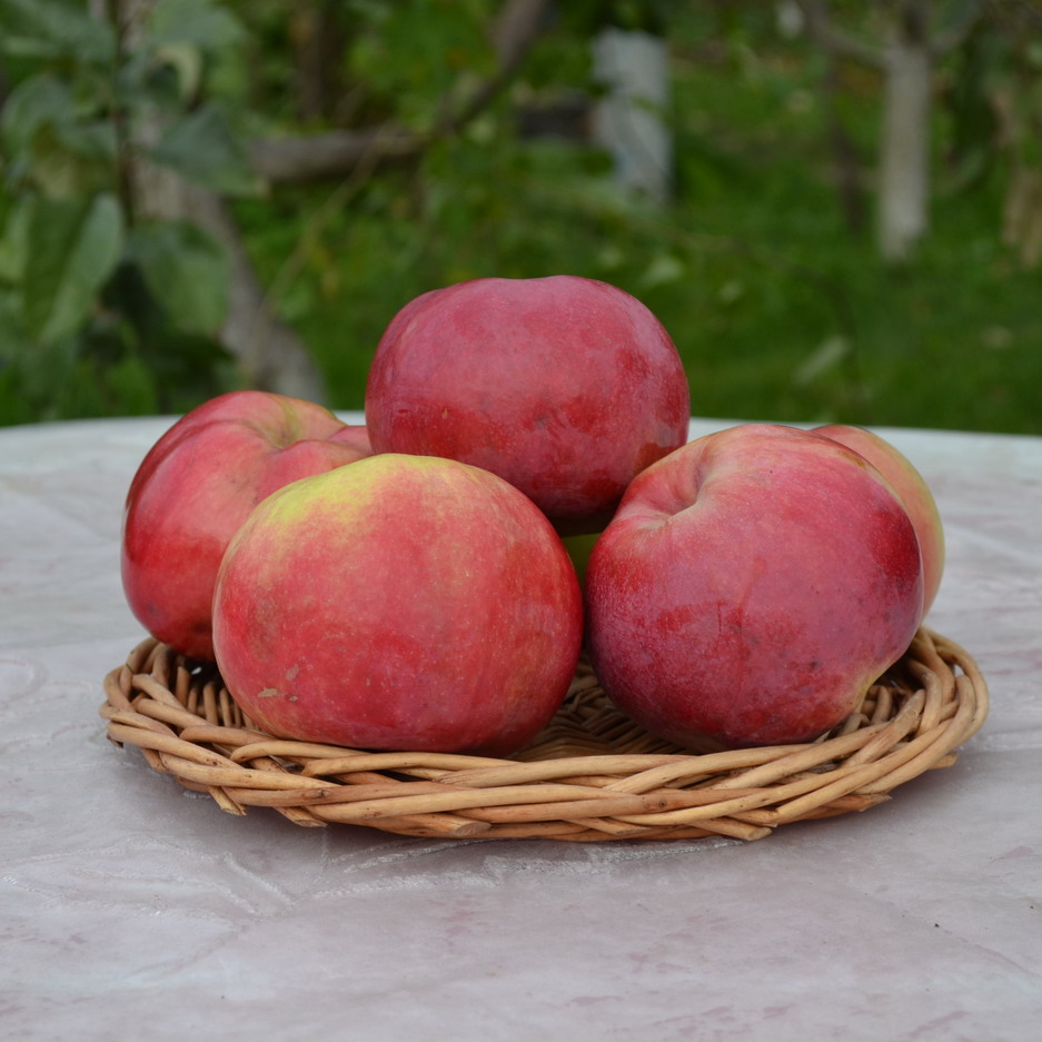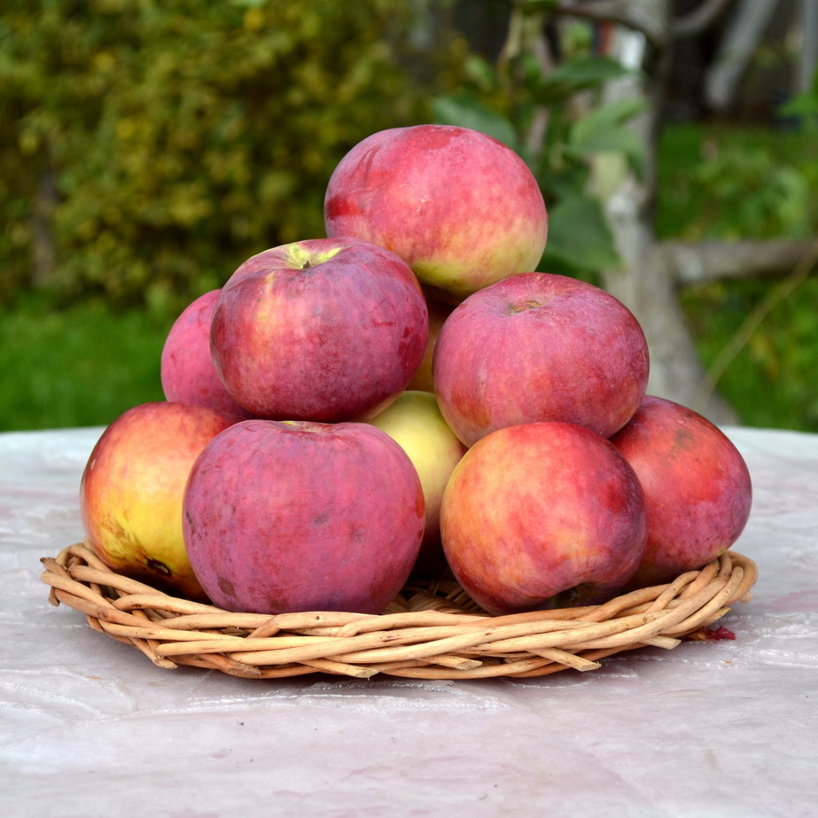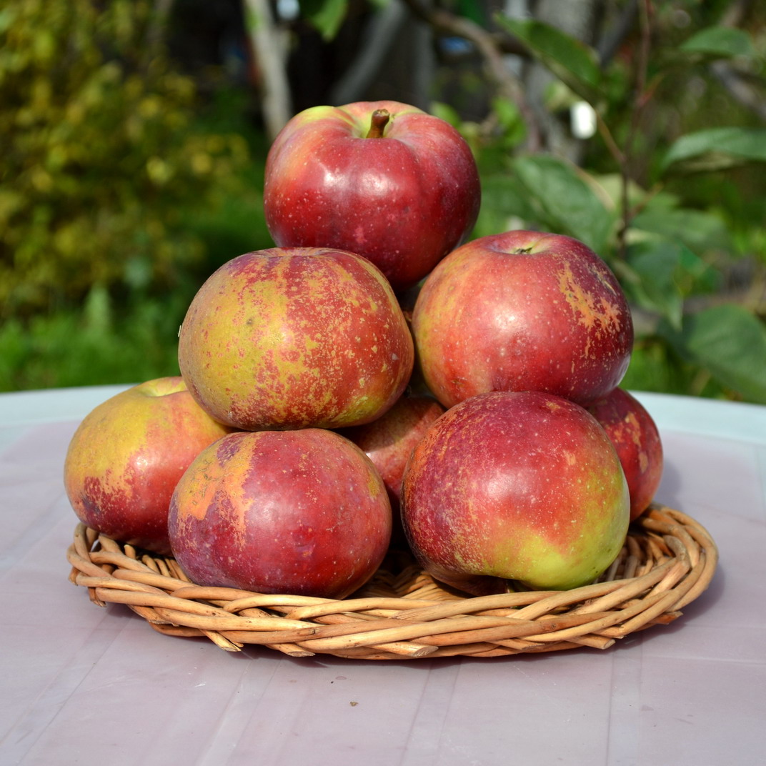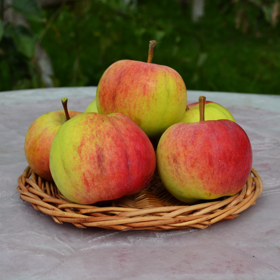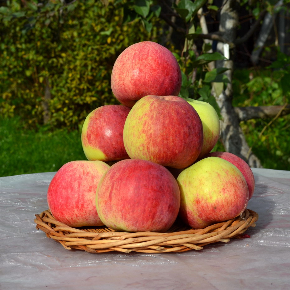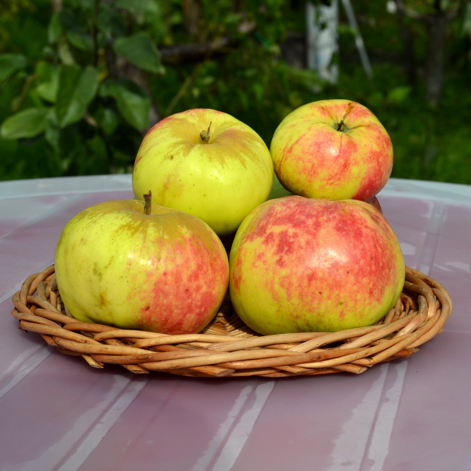 Прививка в крону. Был настроен скептически по отношению к этому сорту. В прошлом году яблоки порвало прямо на дереве. Показывал фото. Хоть и пишут, что устойчив к парше и прочим болячкам. Сорт осенний, при съёме две недели назад- показался кисловатым. После двух недель хранения на тёплом балконе, сегодня был удивлён его вкусом. Не доверяя только своим вкусовым пристрастиям, угостил коллег. Все отметили шикарный кисло-сладкий вкус. Мякоть желтоватая, нежная, пишут что имеет винно- сладкий вкус.