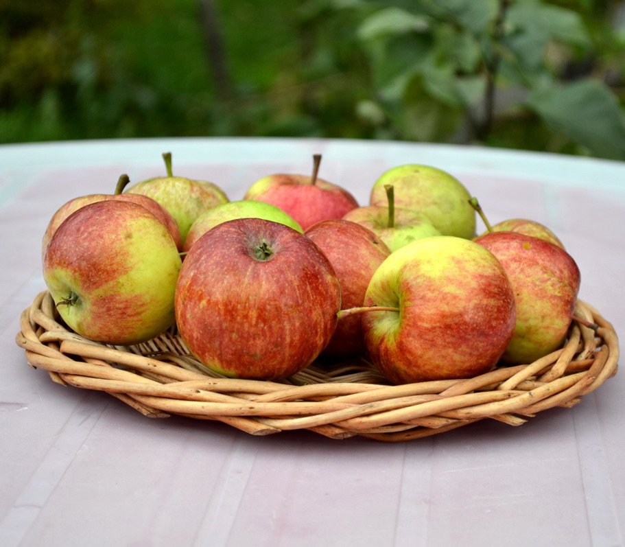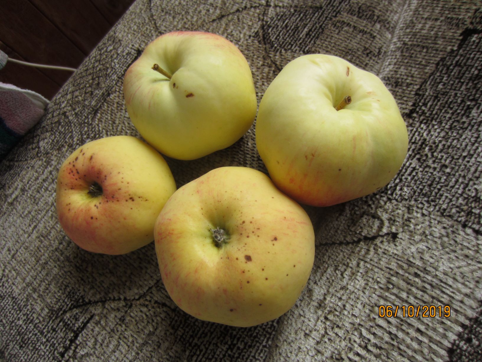 И так про Скифское золото. Описание есть в НЭСЯ, повторяться не будем. У меня два молодых деревца в разных географически садах.На обоих деревьях сигнальные плоды. На М9 трёхлетке, которая кстати и в прошлом году цвела, но не завязала, яблок было с десяток. Довольно крупного размера, грамм под 180-200. Снял их две недели назад. Пара штук упало. На 54-118 подвое, яблоня посаженная весной 17 года однолеткой, дала 5 плодов, меньшего правда размера. Но скороплодность на лицо.Что ещё больше поразило и порадовало, так это то,что ВСЕ завязавшиеся по весне яблоки благополучно довисели до съёма. Ни гнилых, ни плодожорки