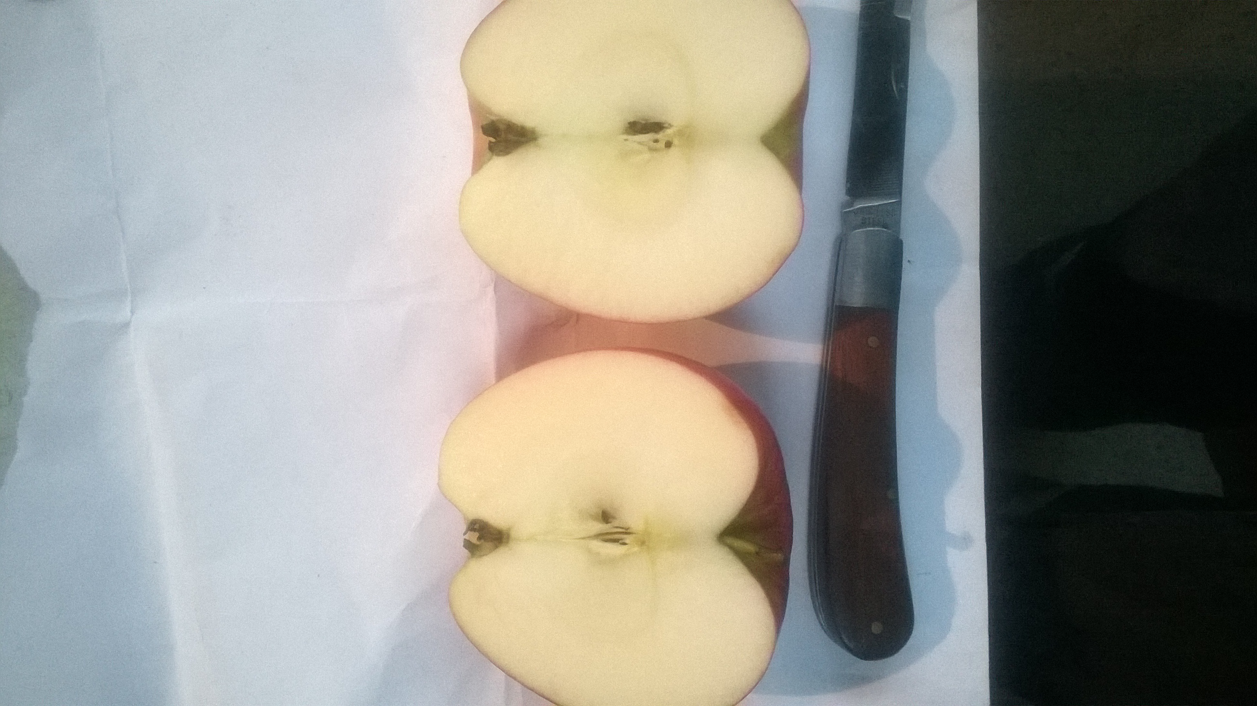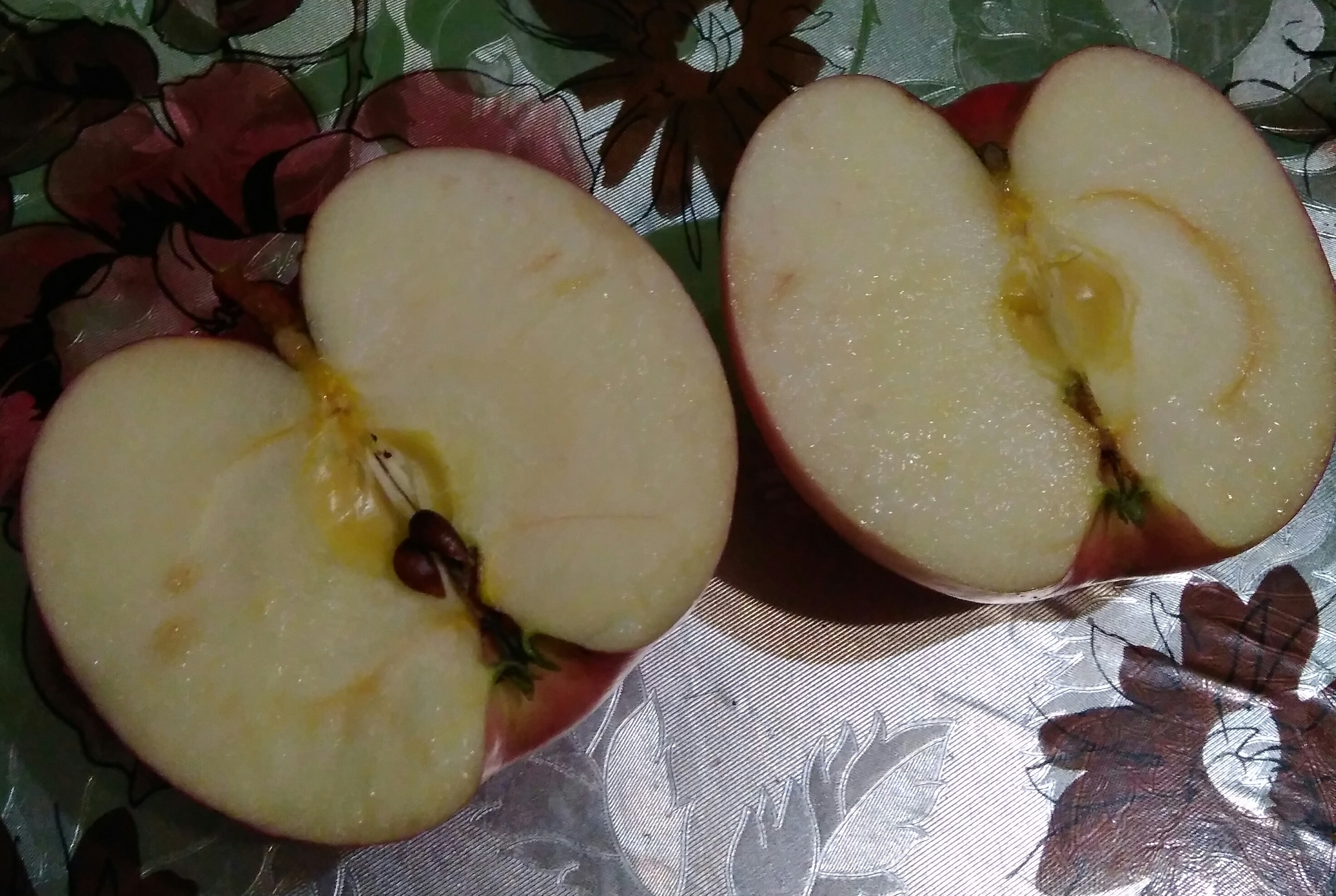 Пикколо. Виктор Сарат угостил, за что ему спасибо!! Да мякоть немного грубоватая, сочная. Сахара для меня уже хорошо, возможно для кого-то, чуть кисловатое, совсем чуть, для меня нет. Привкус интересный, не понял какой, но очень приятный, тропический наверно. Вкус яркий, свежий, бодрящий какой-то. Яблоко красивое, нарядное. Виктор, пусть отпишется, через месяцок, как ему.