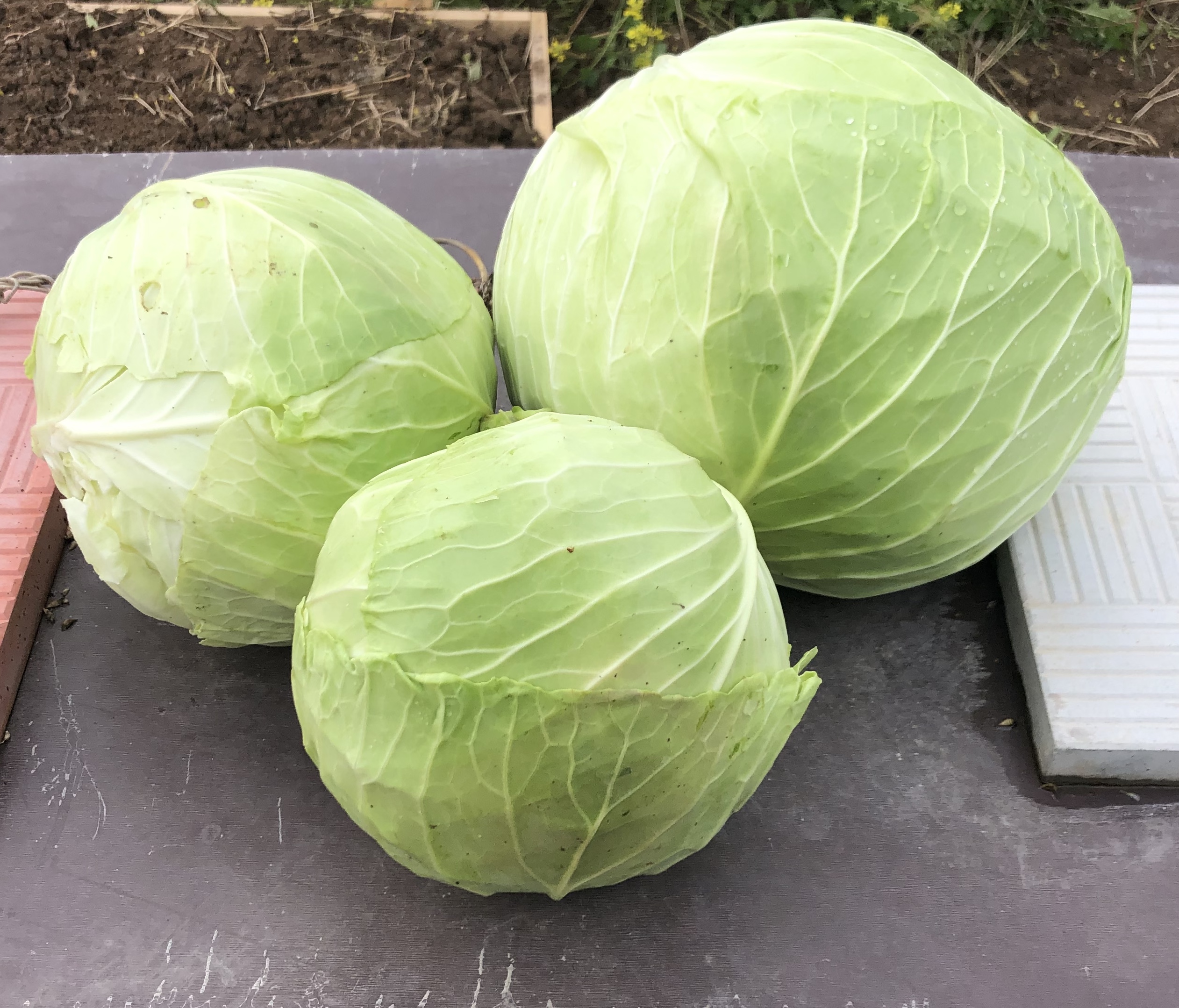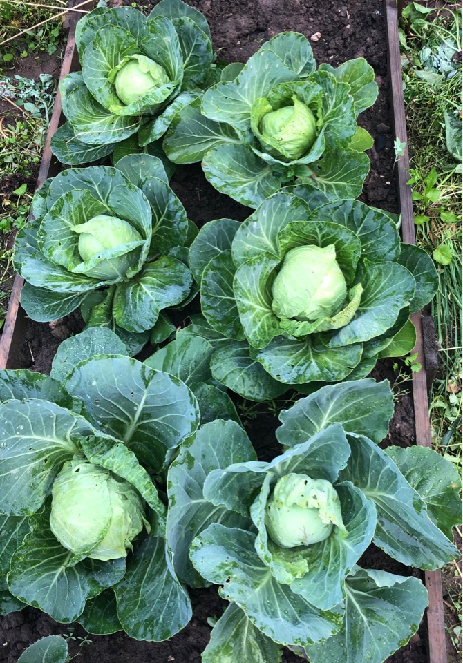 Убрала капусту Мегатон. Специально сажала часто, чтобы кочаны были не очень крупными. Можно было ещё подождать, но очень место необходимо.