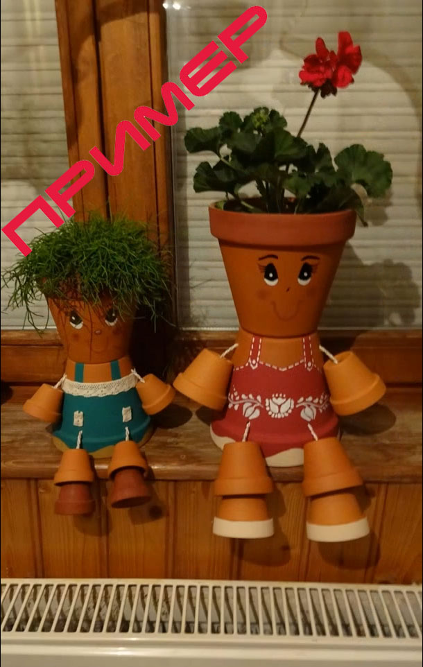 Вот какие необычные кашпо для цветов можно сделать из обычных терракотовых горшочков. Фото "Примеры" взяты из сети , а остальные сам недавно сделал. Как вам такая идея?